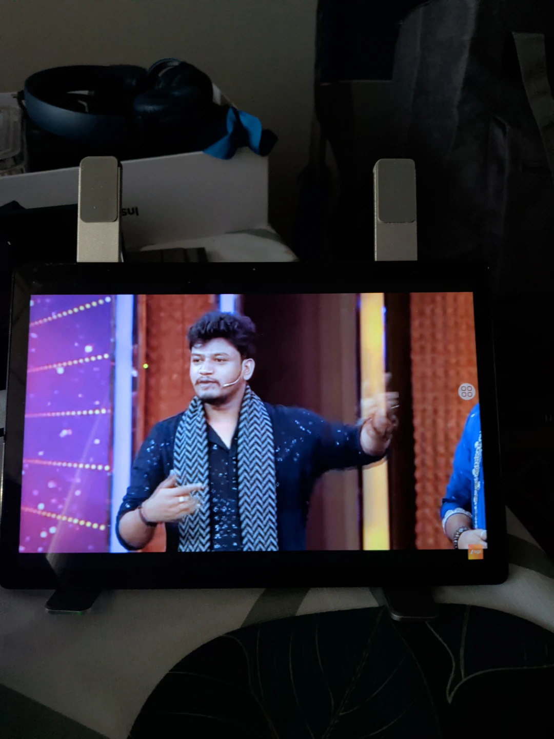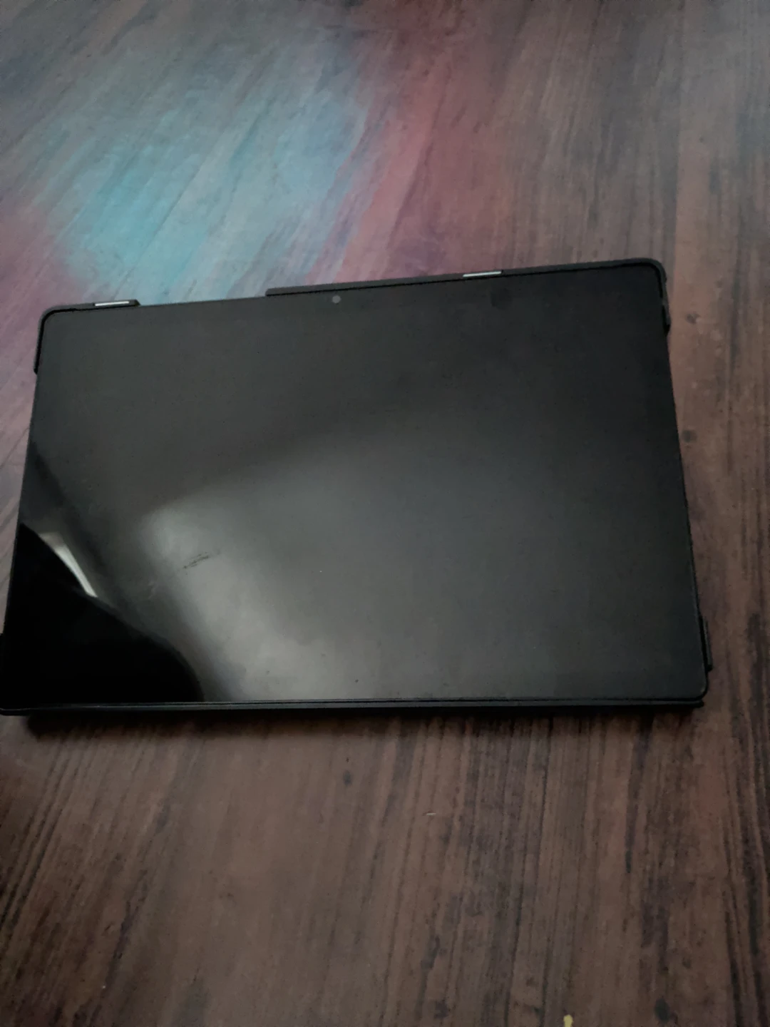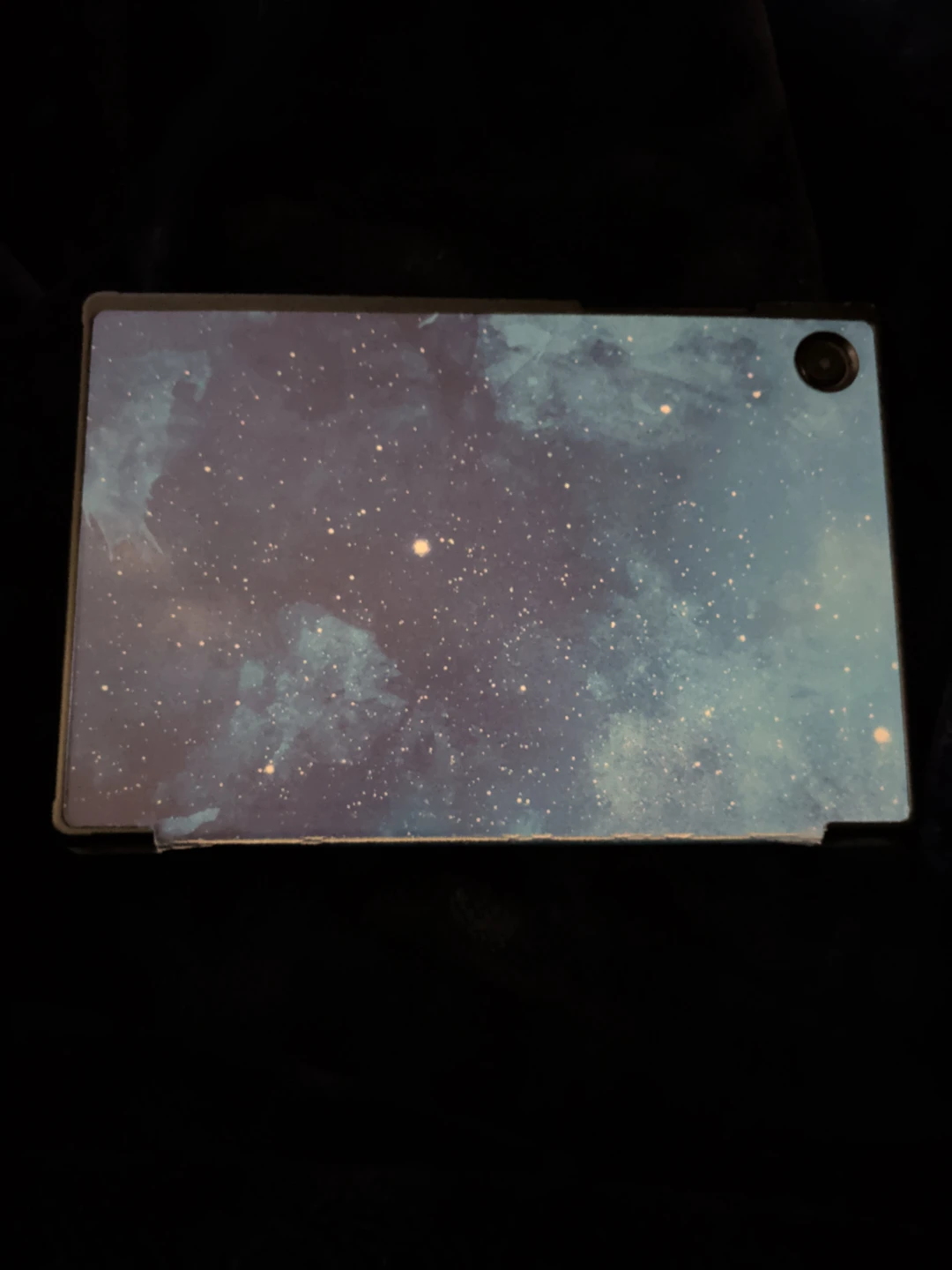 This is a tablet featuring a cool space-themed protective case. It's in good working condition. Includes original charger and box.