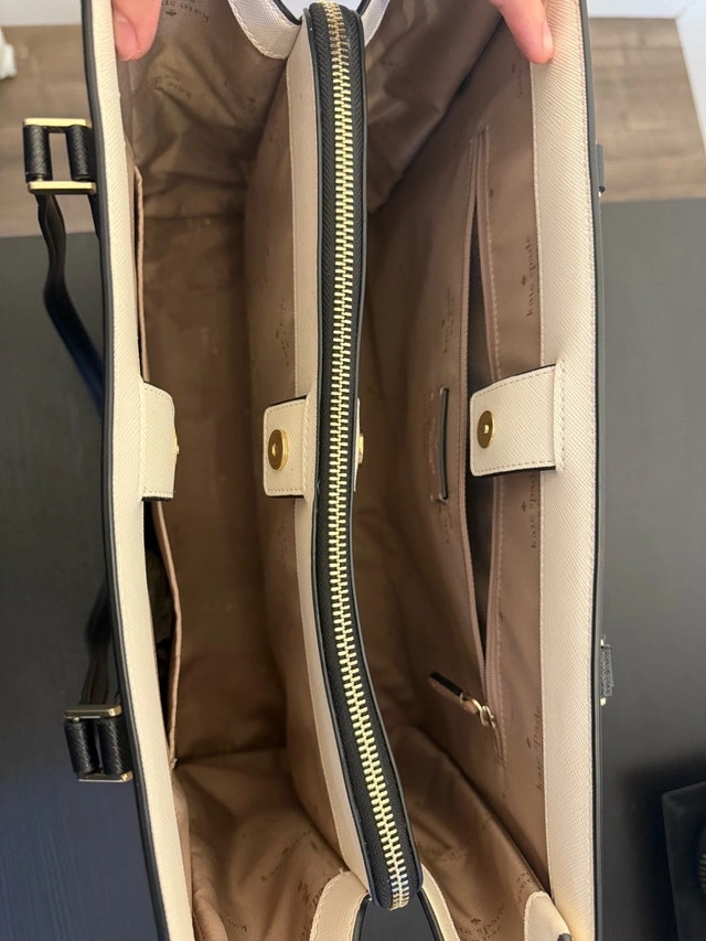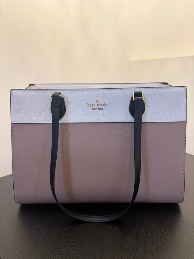 Kate Spade New York Madison Colorblock Saffiano Leather East West Laptop Tote. Original price: $359. Selling price: $340. Spacious interior fits laptop, documents, and essentials. Features a sturdy double shoulder strap. Neutral colors match any outfit. Gently used and well cared for. No major flaws. From a smoke-free home. Great for office, travel, or daily errands.