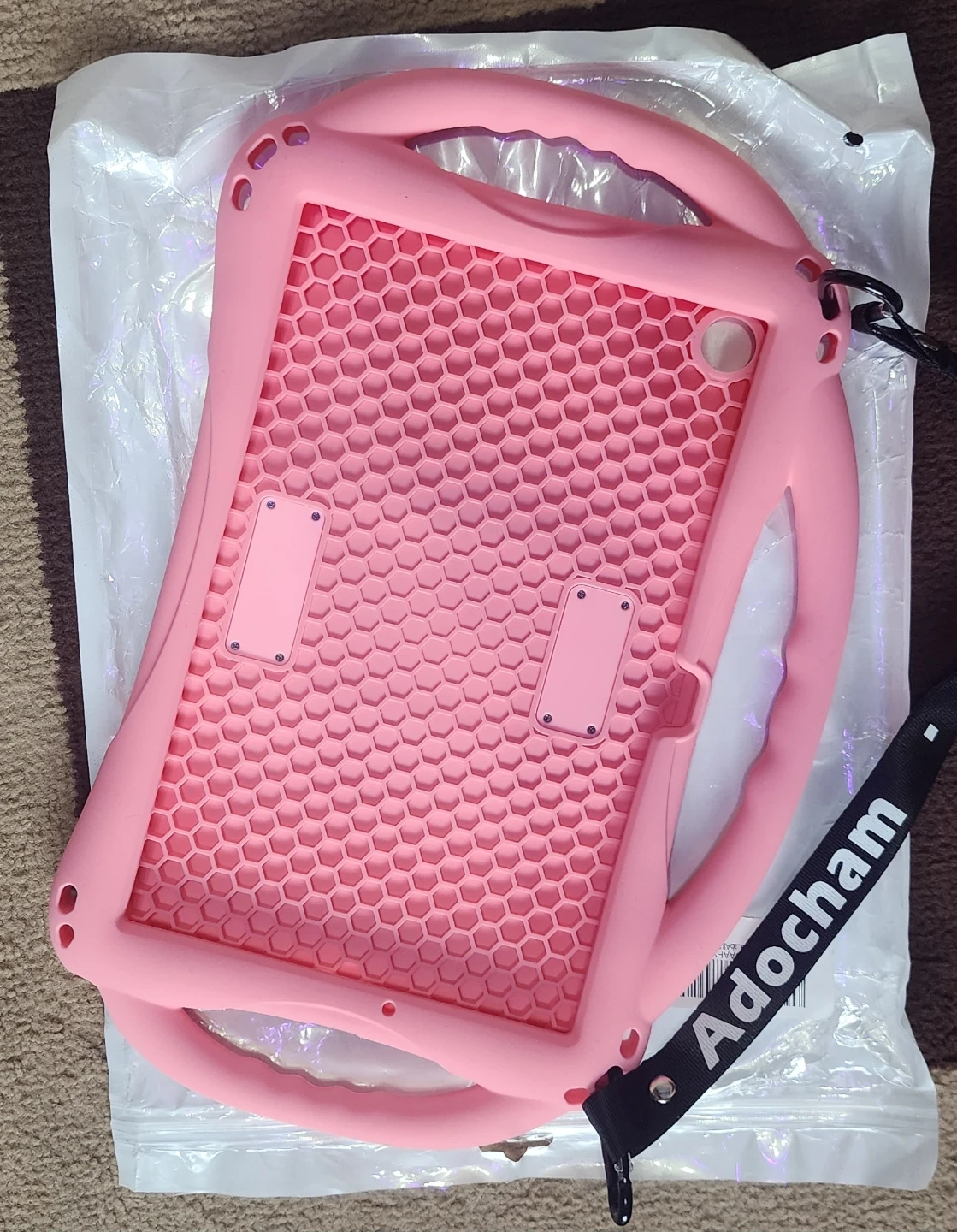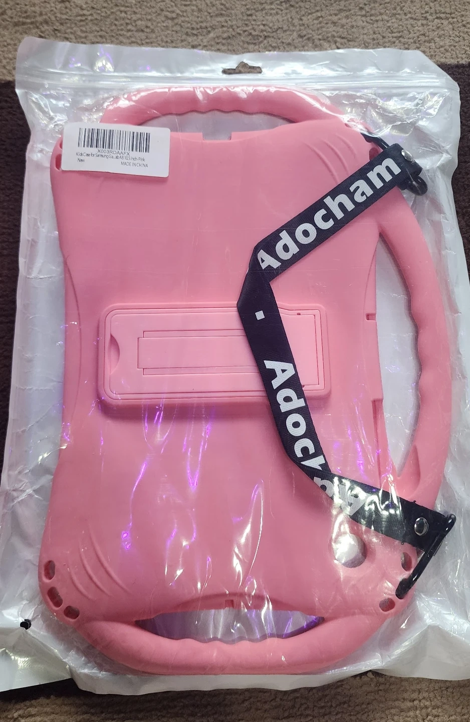Selling a kid case for samsung A8 10.5 inch pink silicone material and built-in handle. It features a stand for easy viewing. Protects tablets from drops and bumps!