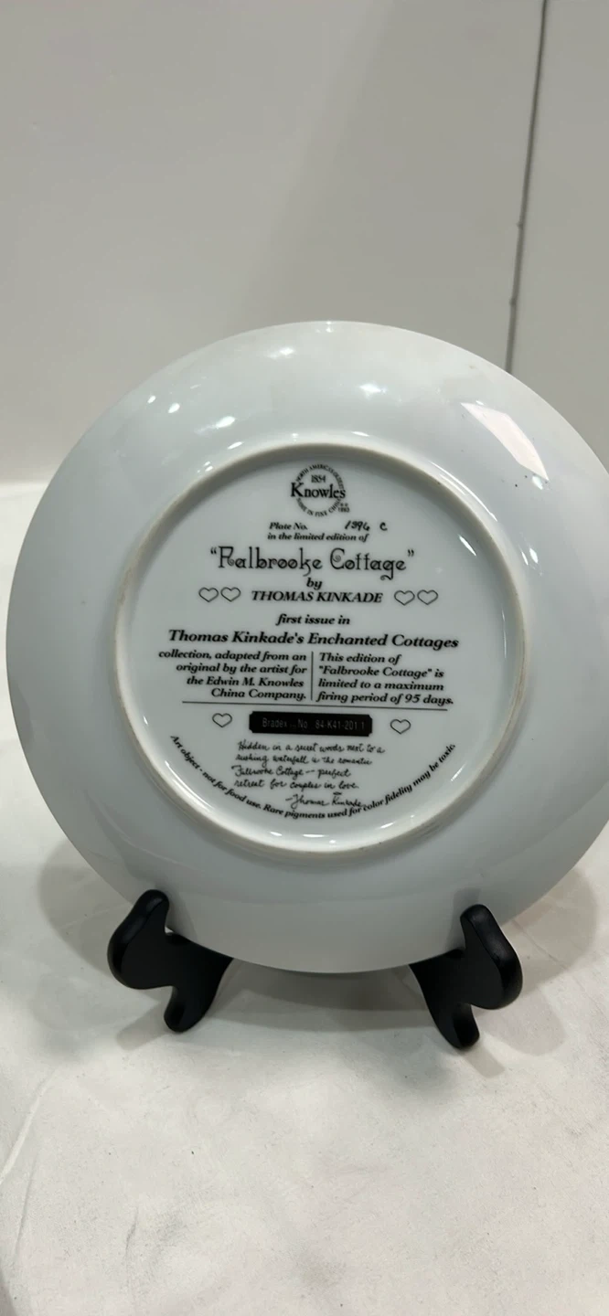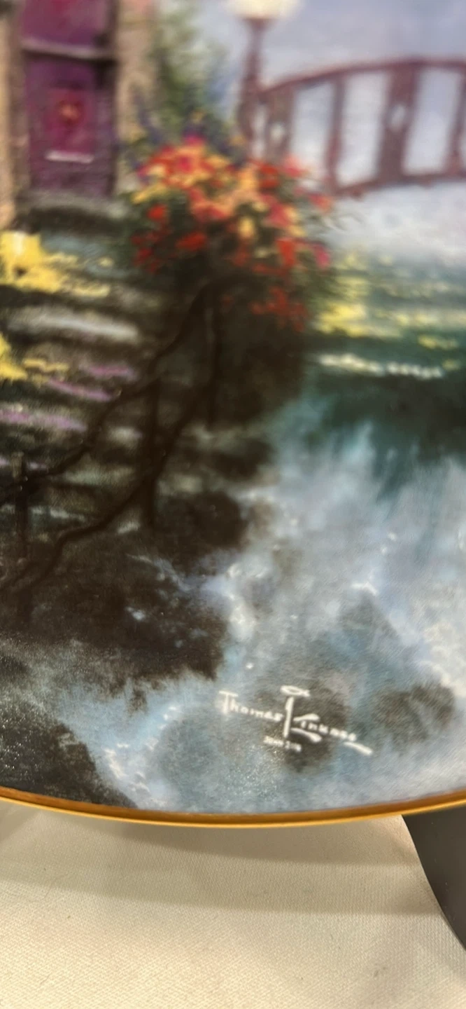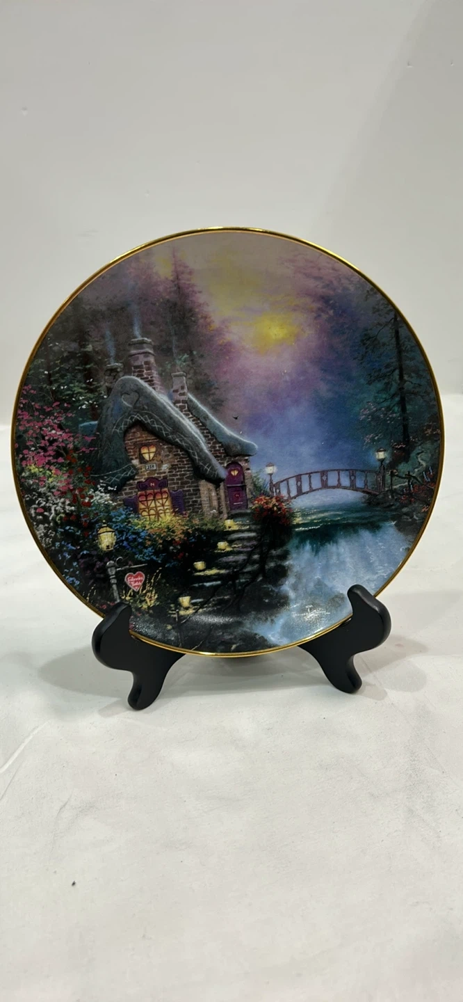 This is the first issue in Thomas Kinkade's Enchanted Cottages collection. It's an original art piece by the artist, painted on porcelain. The firing period was 95 days.