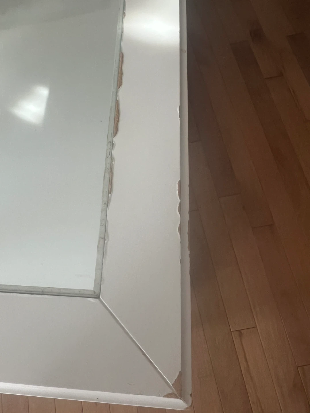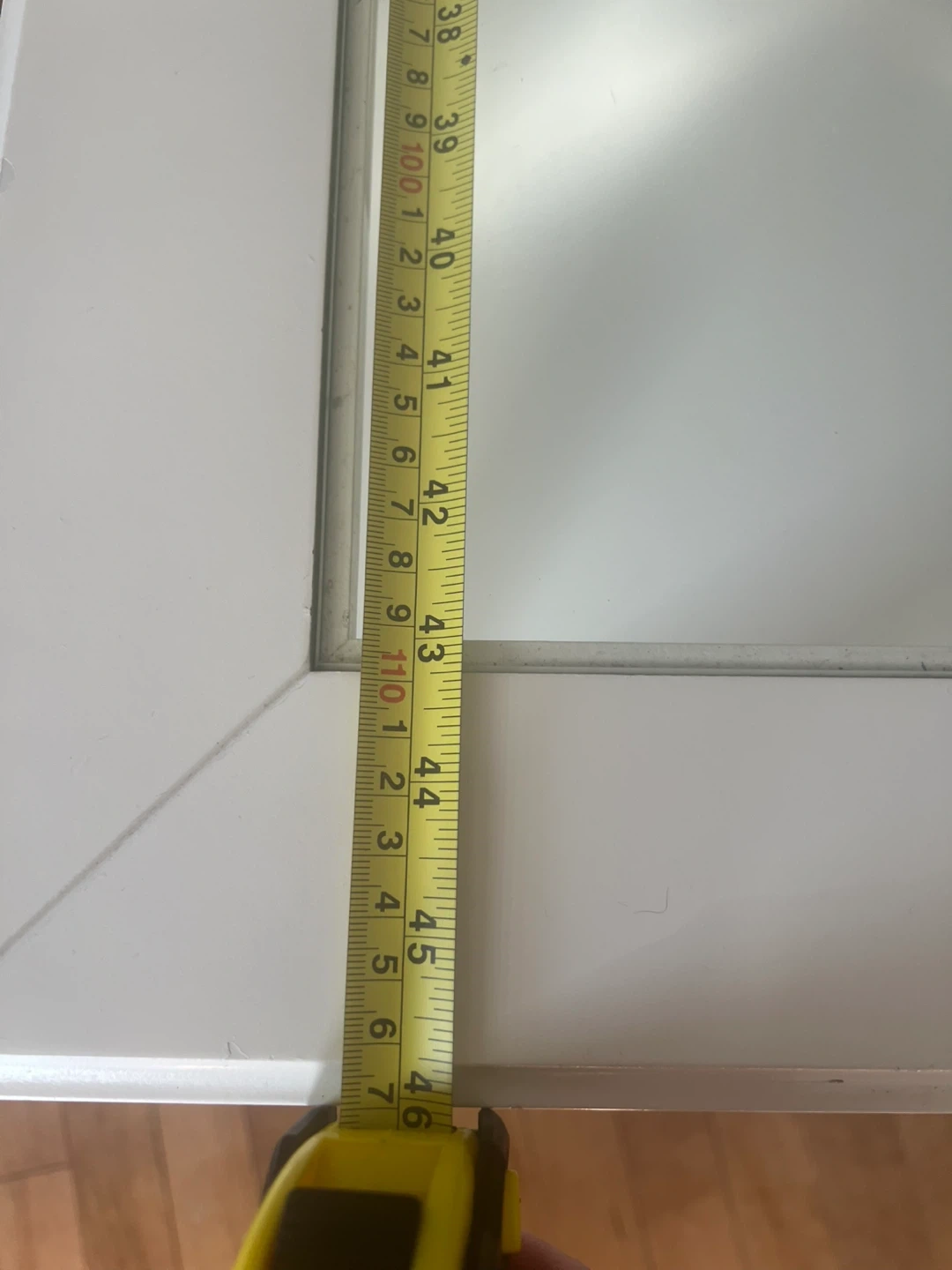 White coffee table with a glass top and a lower shelf. Measures approximately 43 inches in length and 27 inches in width. It's a great spot for your remotes and magazines!