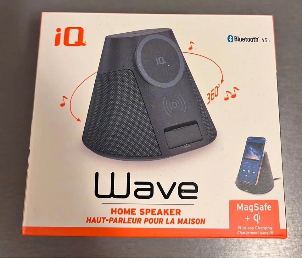 Selling an iQ Wave Bluetooth Home Speaker with a built-in wireless charging stand, perfect for your desk or nightstand. This is an all-in-one device with 360° Bluetooth speaker for clear, room-filling sound, and a wireless charging stand. It supports MagSafe 7.5W for iPhone and Qi 15W for other compatible devices. Features Bluetooth 5.1 for a fast, stable connection. Great for bedrooms, offices, dorms, or living rooms. Play music while charging your phone – no extra cables needed! Local pickup preferred. Cash or e-transfer accepted.