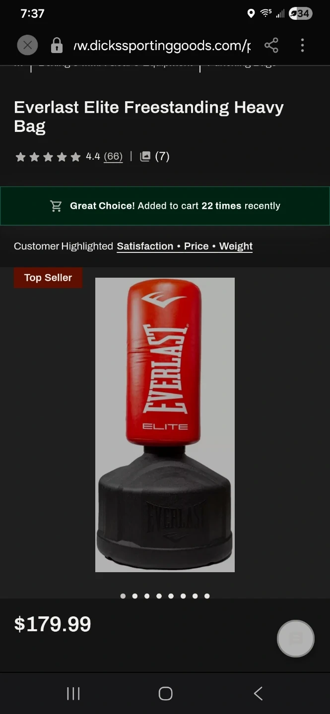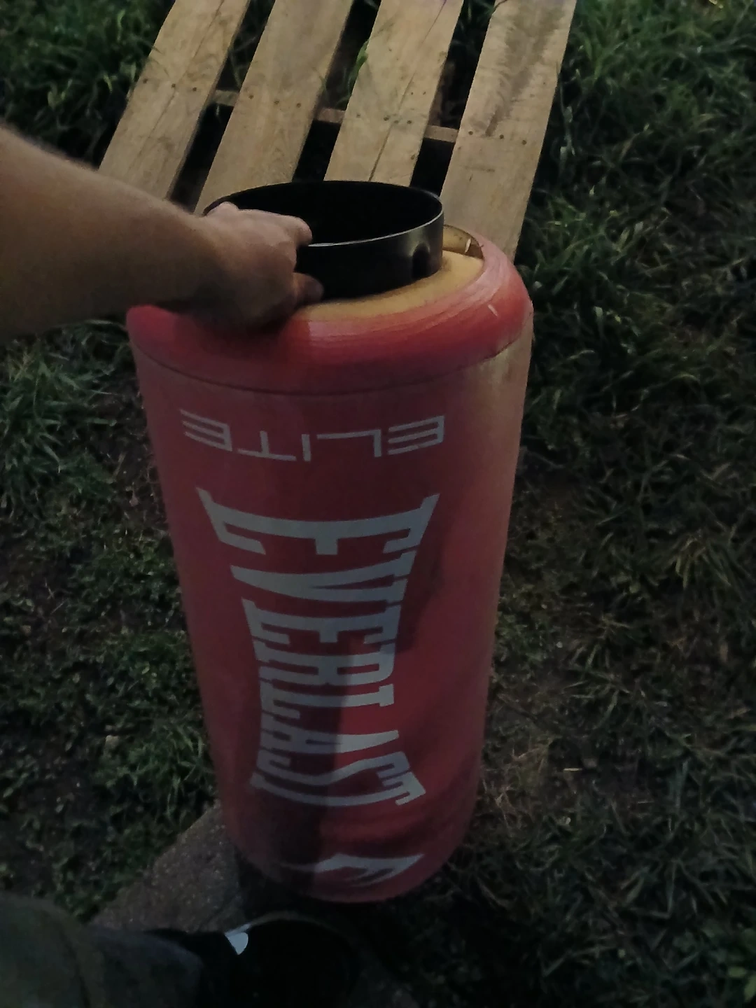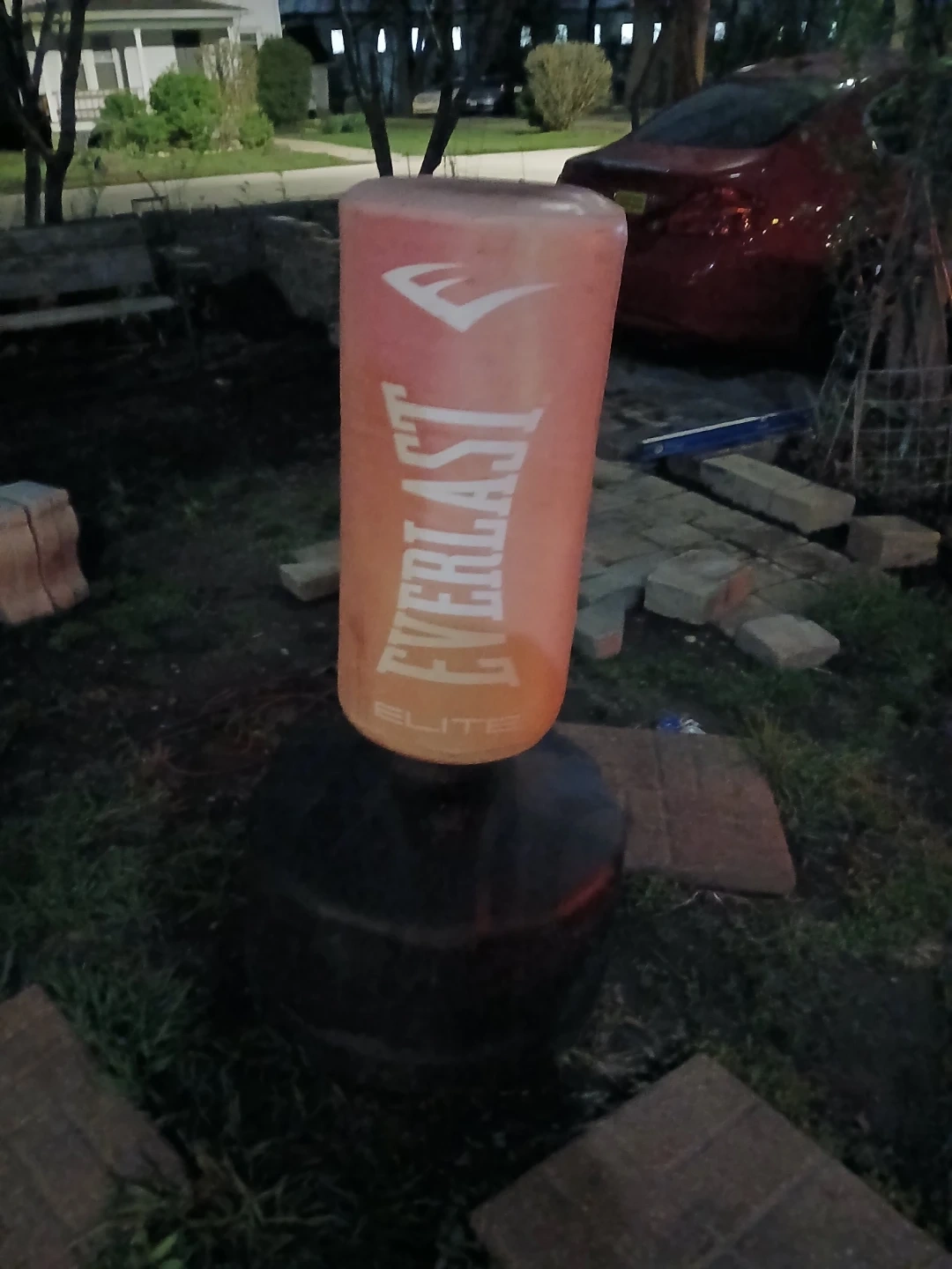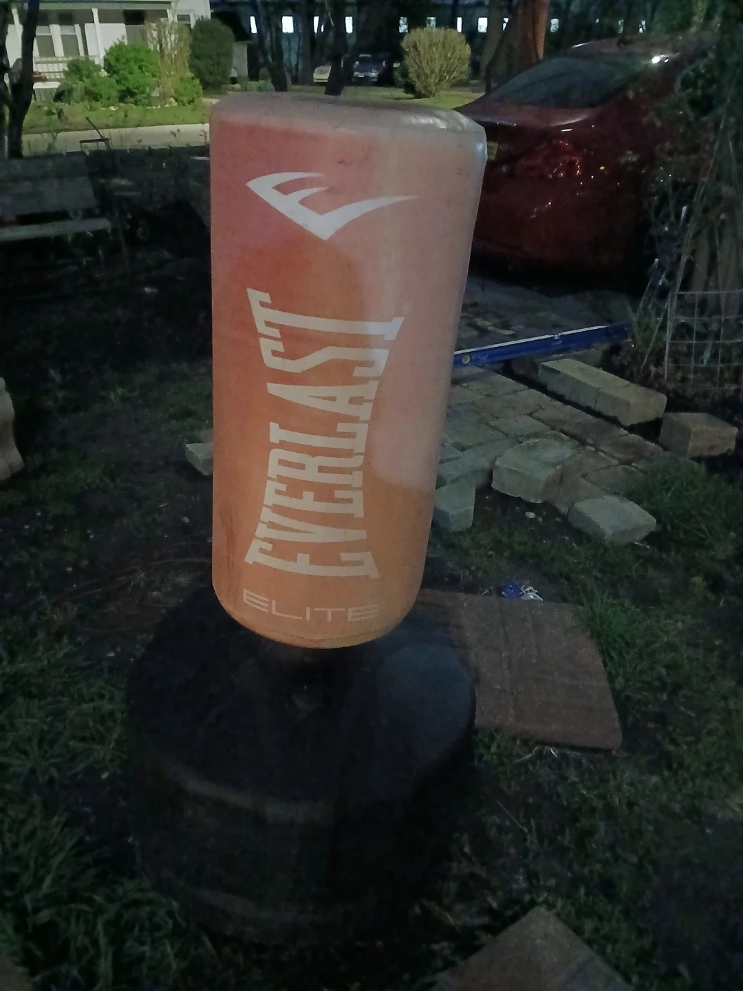 This is an Everlast Elite freestanding heavy bag. It's designed for training and practice. The bag has a durable exterior and a stable base for stability during use. I wanted gone ASAP. Because it's using it a lot of space in my garage. I want everything gone.