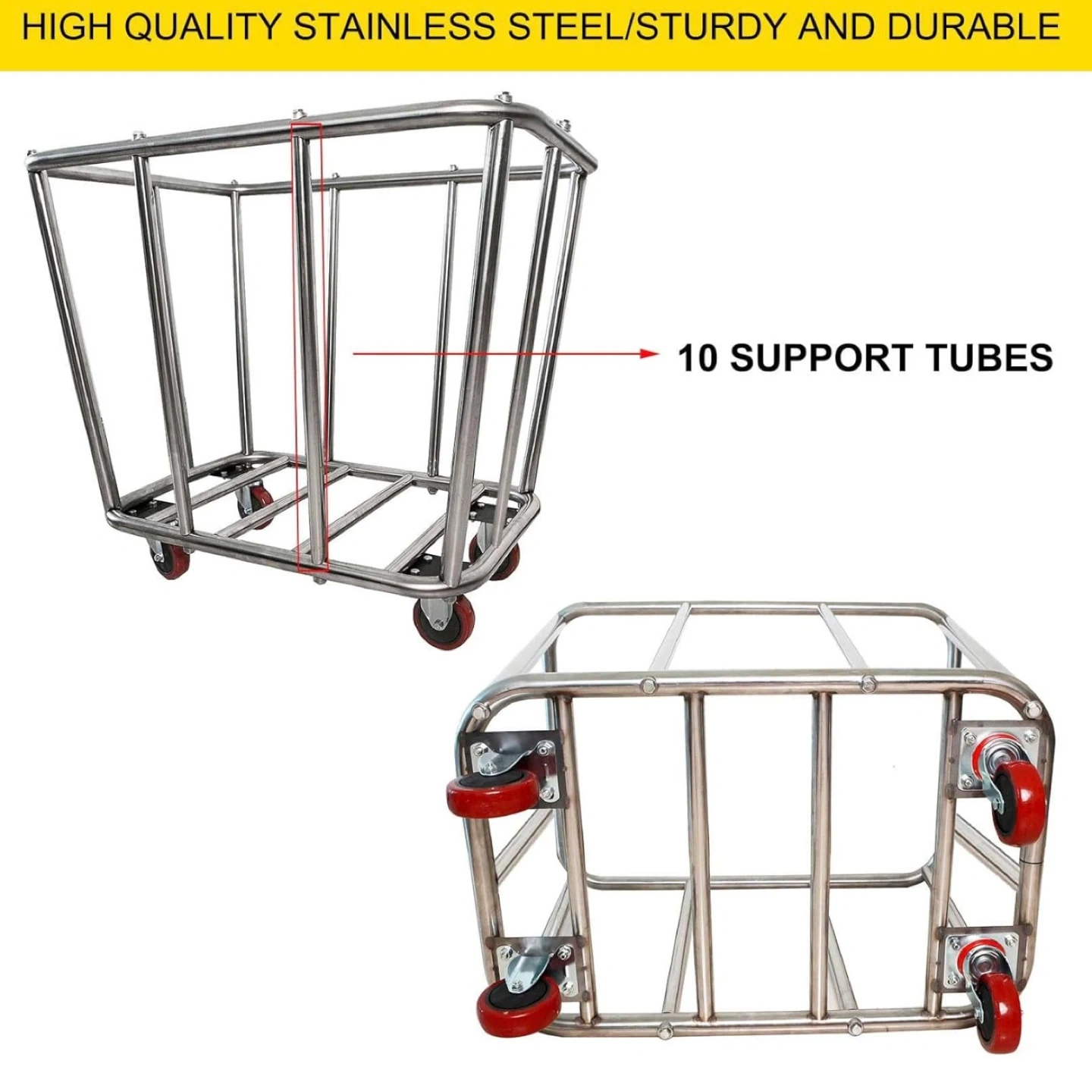 Laundry Cart Commercial,10 Bushel (350L) Large Industrial Rolling Laundry Hamper with 4 Inch Wheels,Home Heavy Duty Laundry Baskets with Stainless Steel Frame, 286 LBS Load,10 Support Tubes