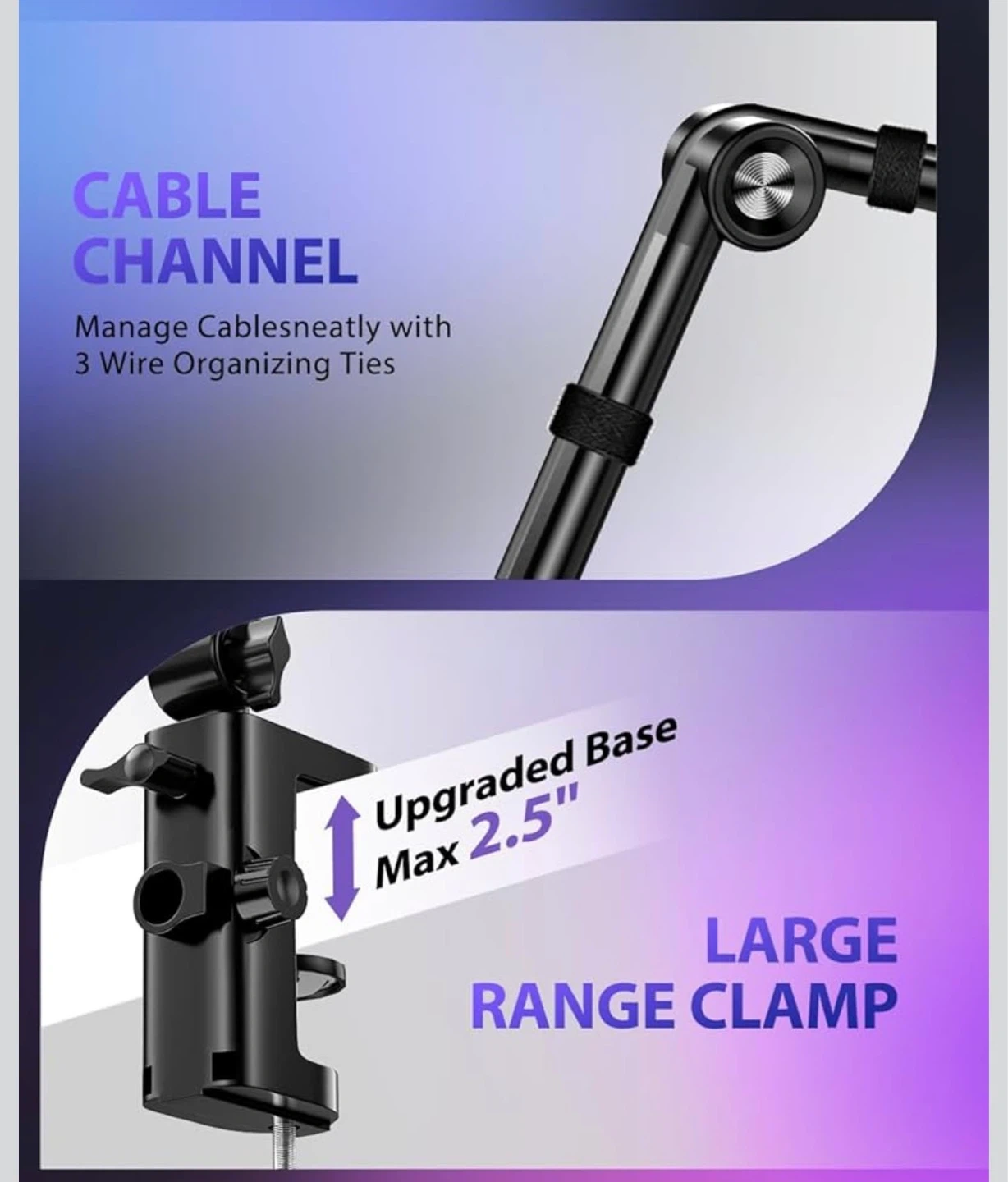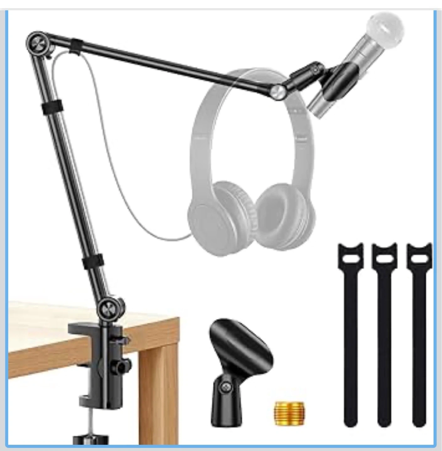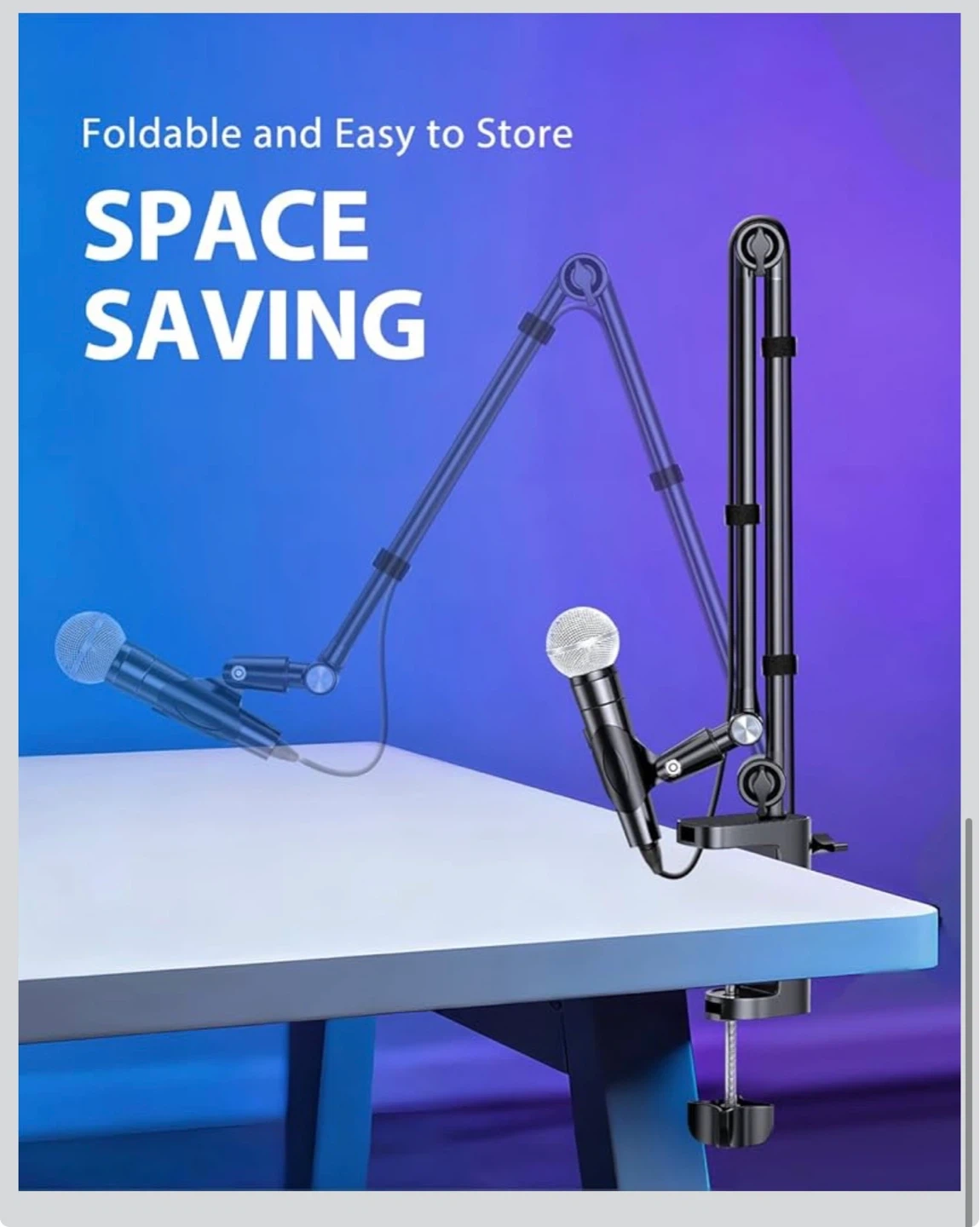Microphone Boom Arm, Aluminum Alloy Mic Arm Stand for Blue Yeti, HyperX QuadCast, Shure SM7B and Other Mic, 360° Rotatable Head Mic Arm Desk Mount with 3/8" to 5/8" Adapter for Podcast Gaming