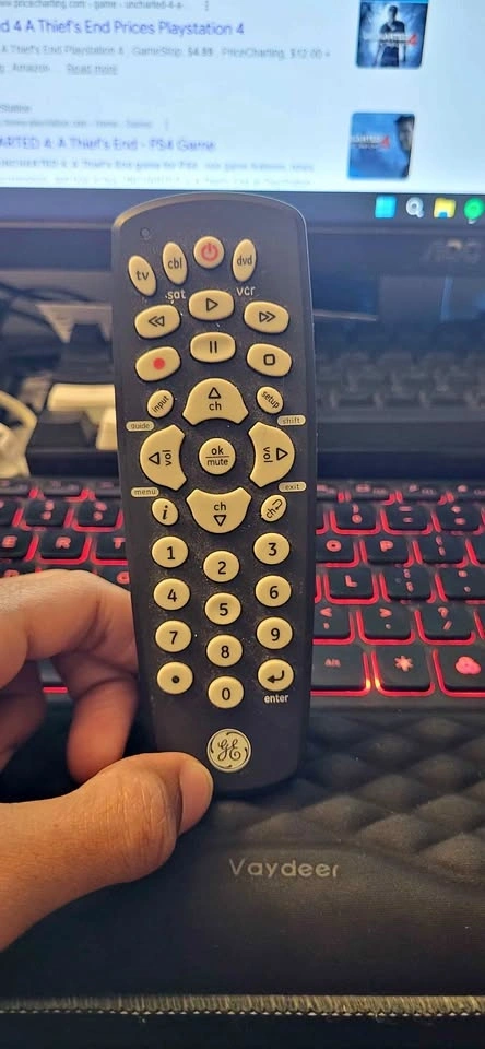 Selling a GE Universal Remote Control in excellent condition. This is a versatile 4-device remote that helps you declutter by replacing up to four different controllers. Perfect for TVs, Blu-ray/DVD players, cable/satellite boxes, and streaming players like Roku or Apple TV.