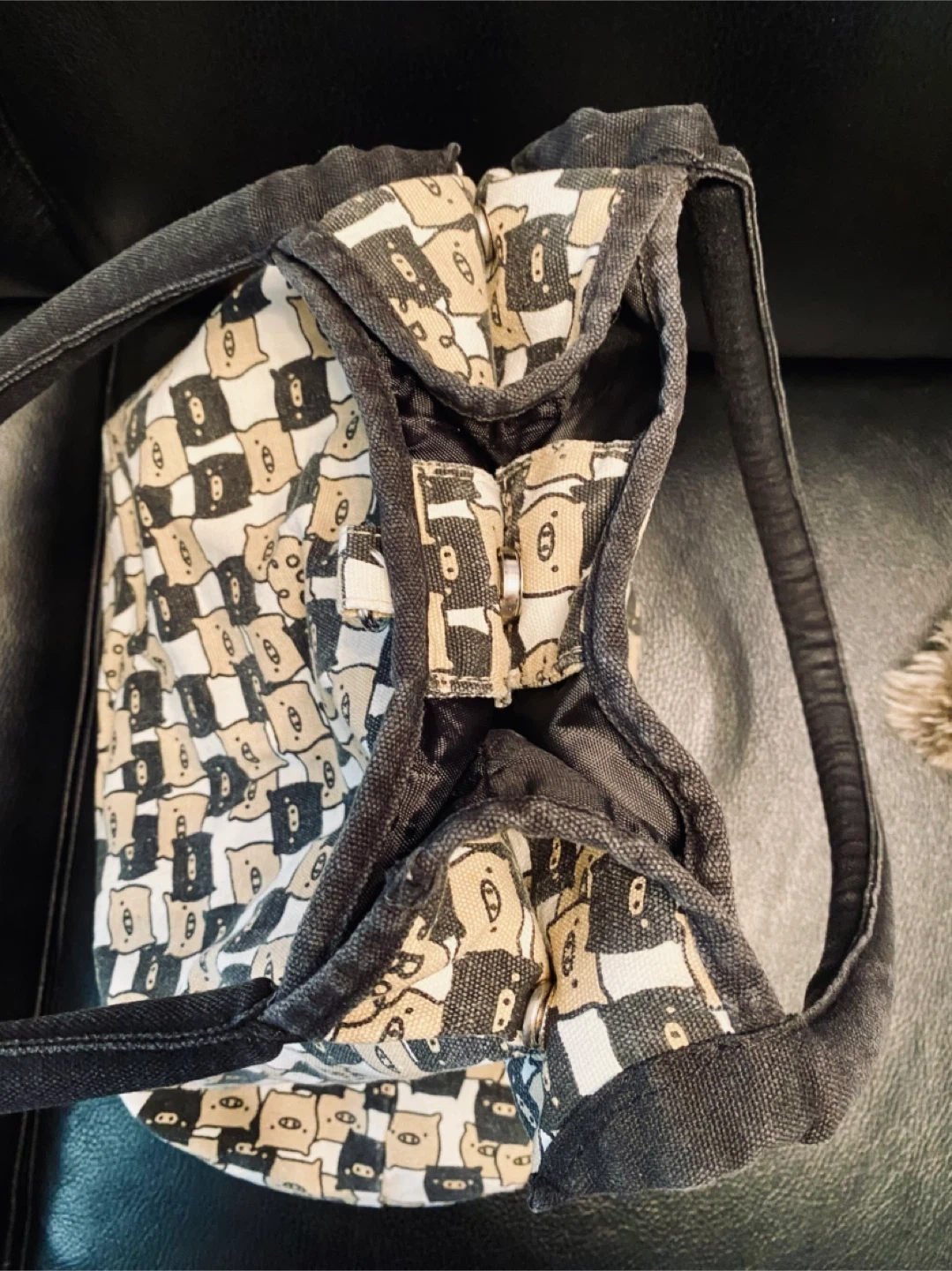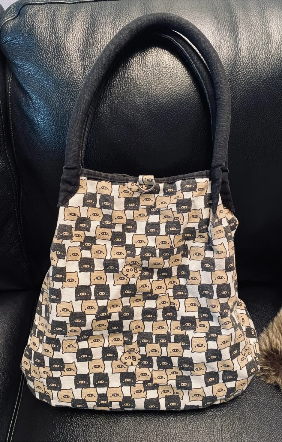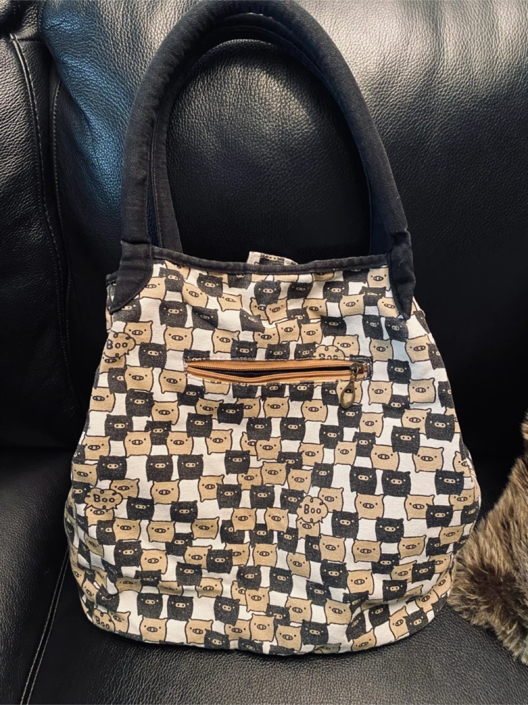 From Japan, this San-X tote bag features the adorable black and white Monokuro Boo pigs. Can you spot them saying βBooβ! So cutee π€