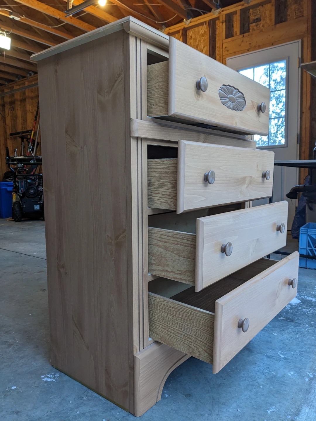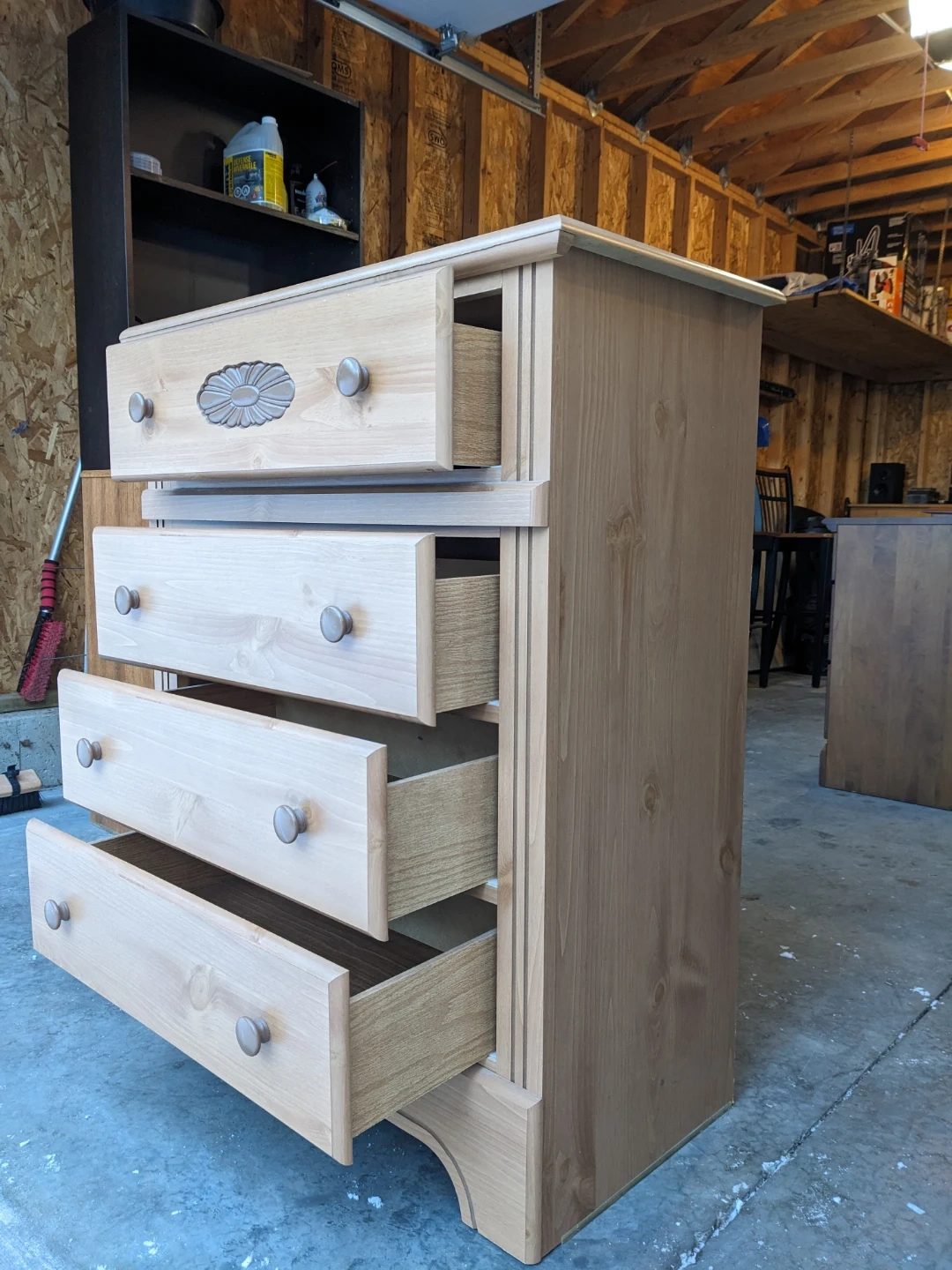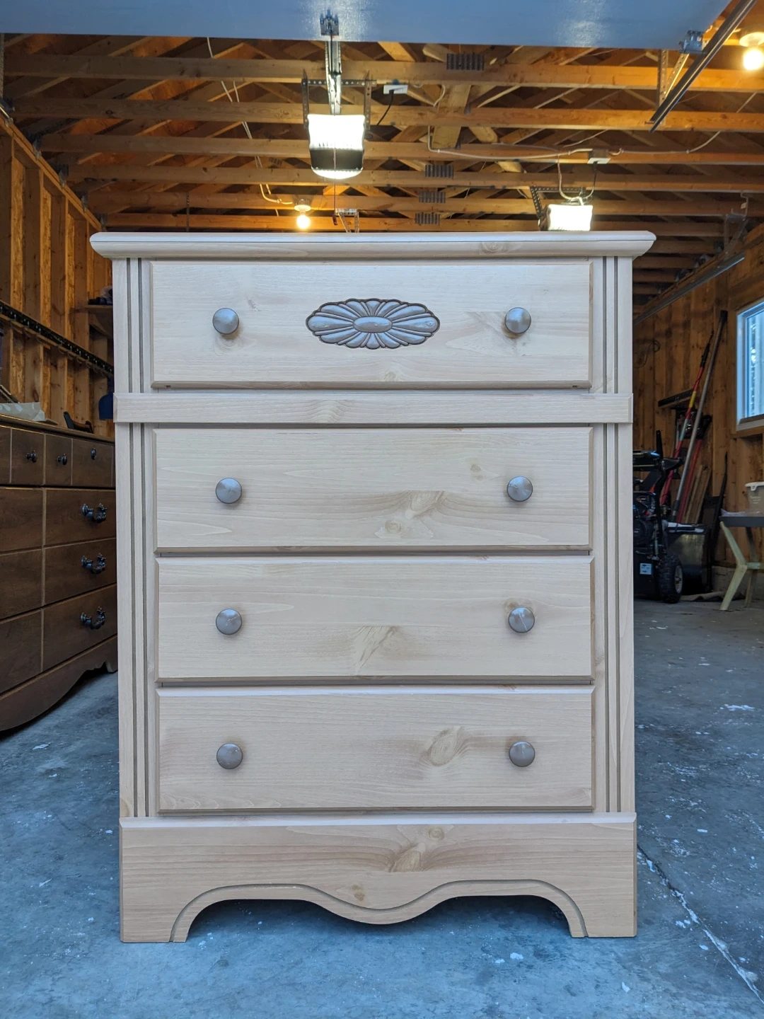Drawers that all open and close perfectly and their modern slides with security stop system. Perfect interiors. Wood carved floral motif and scalloped edge base gives this piece a traditional charm. Curbside delivery is available with delivery payment in advance.