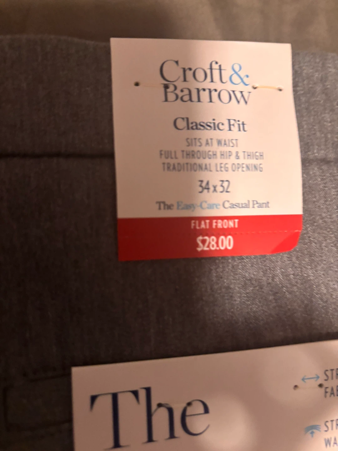 Selling a pair of Croft & Barrow Classic Fit Khaki pants in size 34x32. These easy-care casual pants sit at the waist with a full hip and thigh, and a traditional leg opening. Originally bought for $28!
