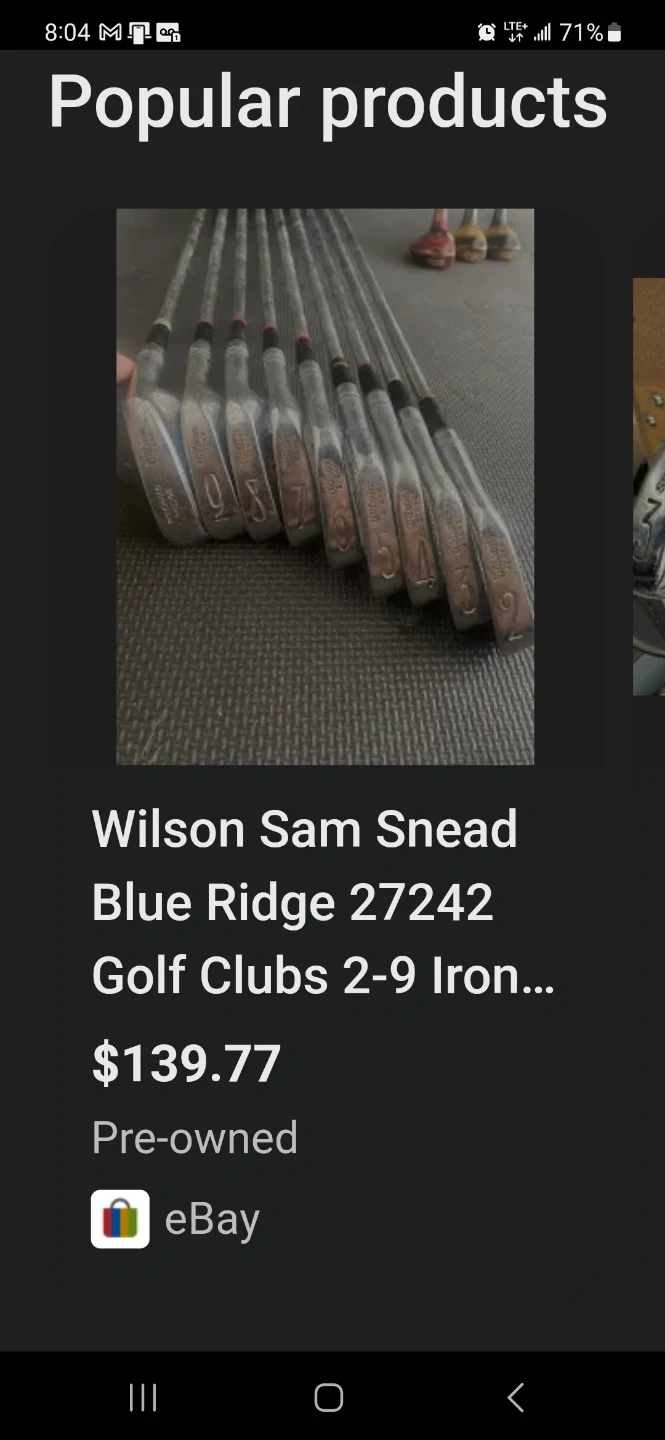 This set includes Wilson Sam Snead Blue Ridge irons and a Northwestern driver. Some golf balls are also included. Great for starting out on the golf course!