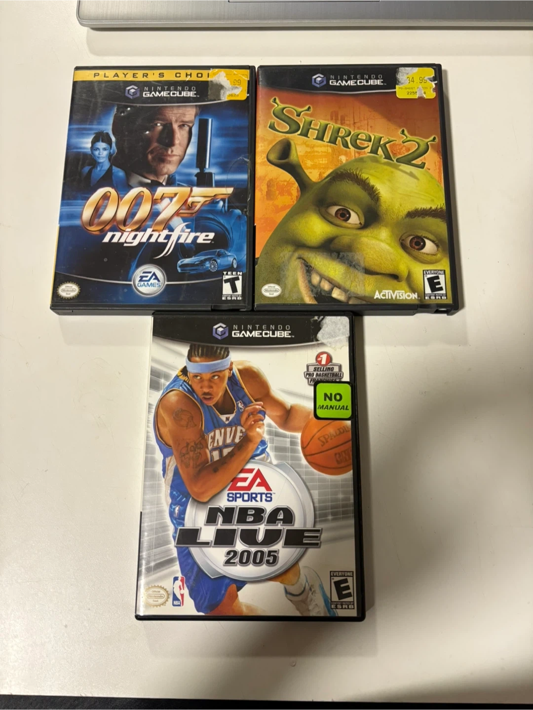 Buy & SellGameCube GamesGameCube Games$5GameCube games for sale or trade. 007: Nightfire (CIB)- $25 Shrek 2 (No manual)- $15 NBA Live 2005 (No manual, DVD case)- 5 Check out my other ads.WHERE TO MEETDollar TreeView MapSELLERMattBolton10213 reviews0 chats·1 favorites·12 viewsSEND CHAT TO SELLERHi Matt! I’m interested in your listing.Hi Matt! I’m interested in your listing.Get the Karrot app to chatSign In to chat