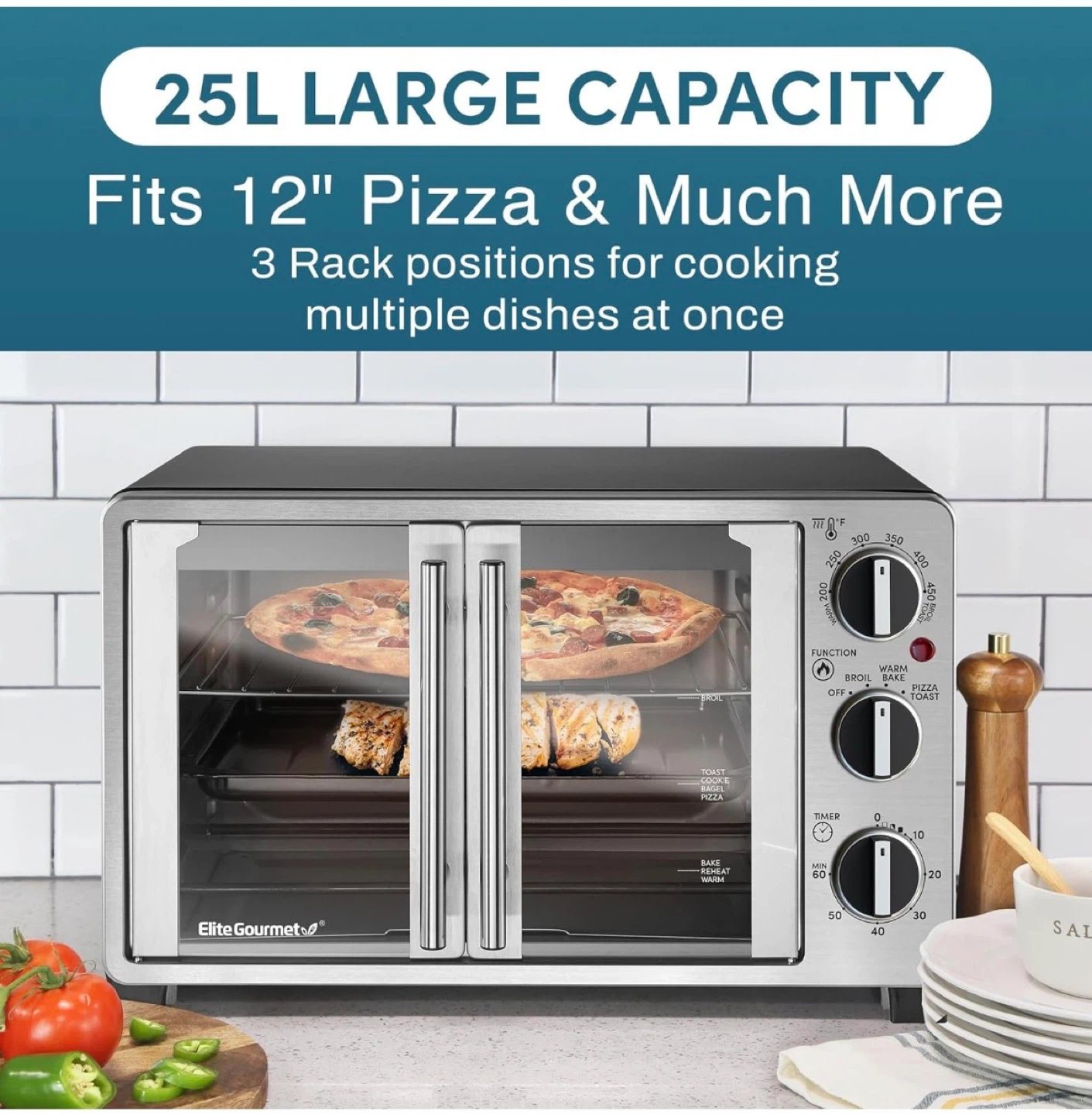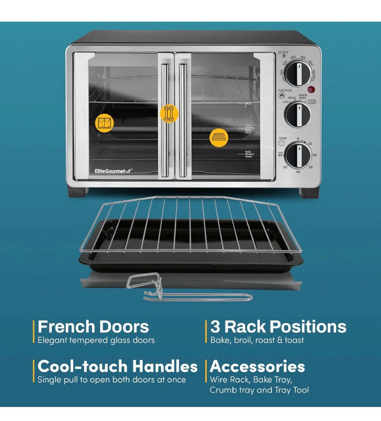 Elite Gourmet Countertop Toaster Oven - Large Capacity