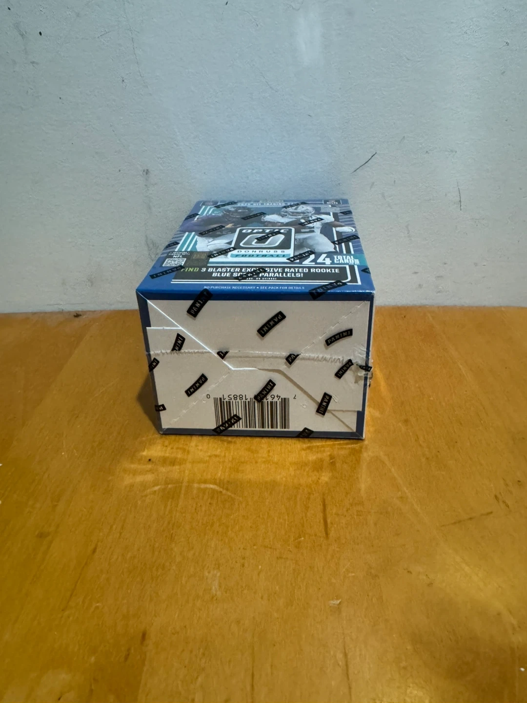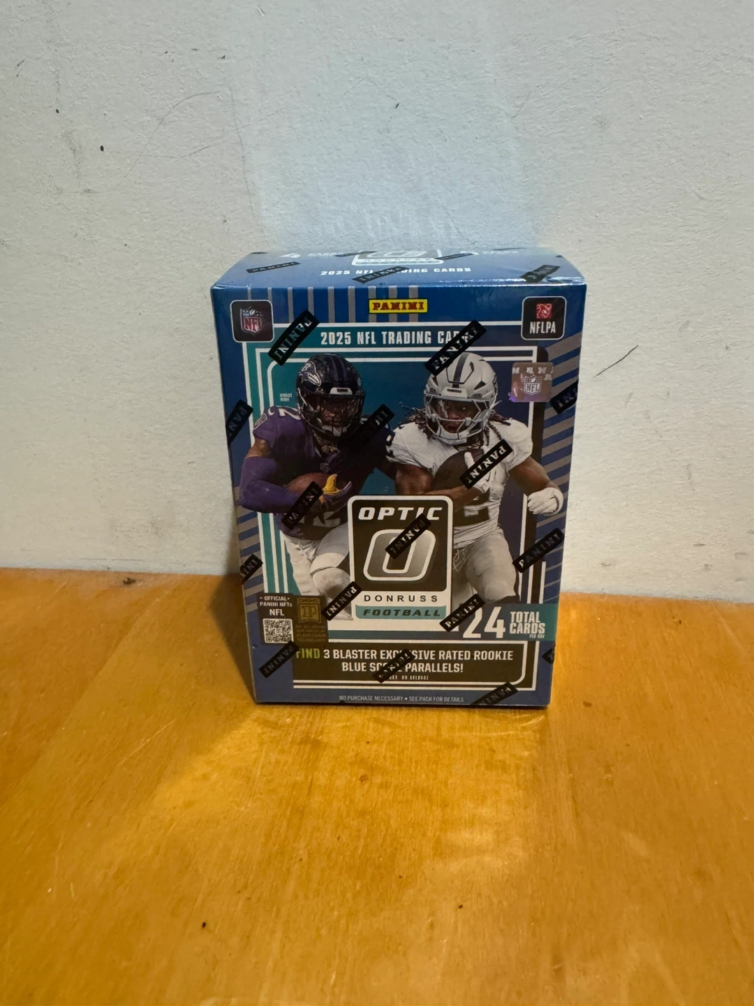 This 2025 Panini Donruss Optic NFL Football trading card blaster box contains 6 packs with 4 cards per pack, totaling 24 cards. Look for Ultra-Rare inserts like Downtown, Downtown Duos, and Uptown Flash Marks. You'll also find autograph and memorabilia cards from top NFL players.