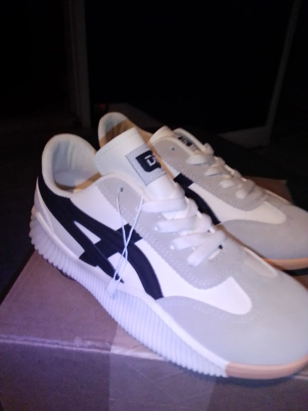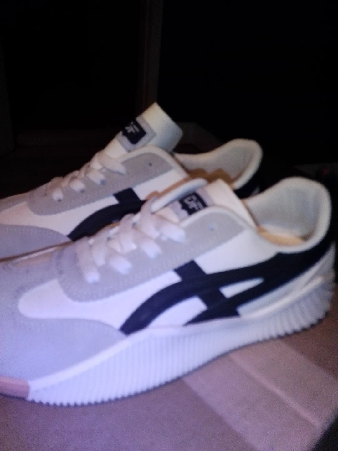 These Onitsuka Tiger Mexico 66 shoes are white and grey. They have a classic low-top silhouette with a rubber sole. Perfect for everyday wear! Great for nurses and health care staff, meant for ease during long shifts.