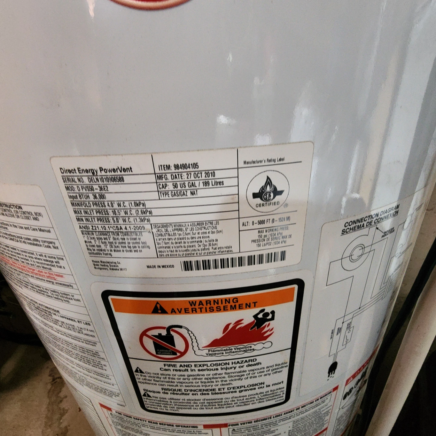 Rheem Direct Energy PowerVent Water Heater