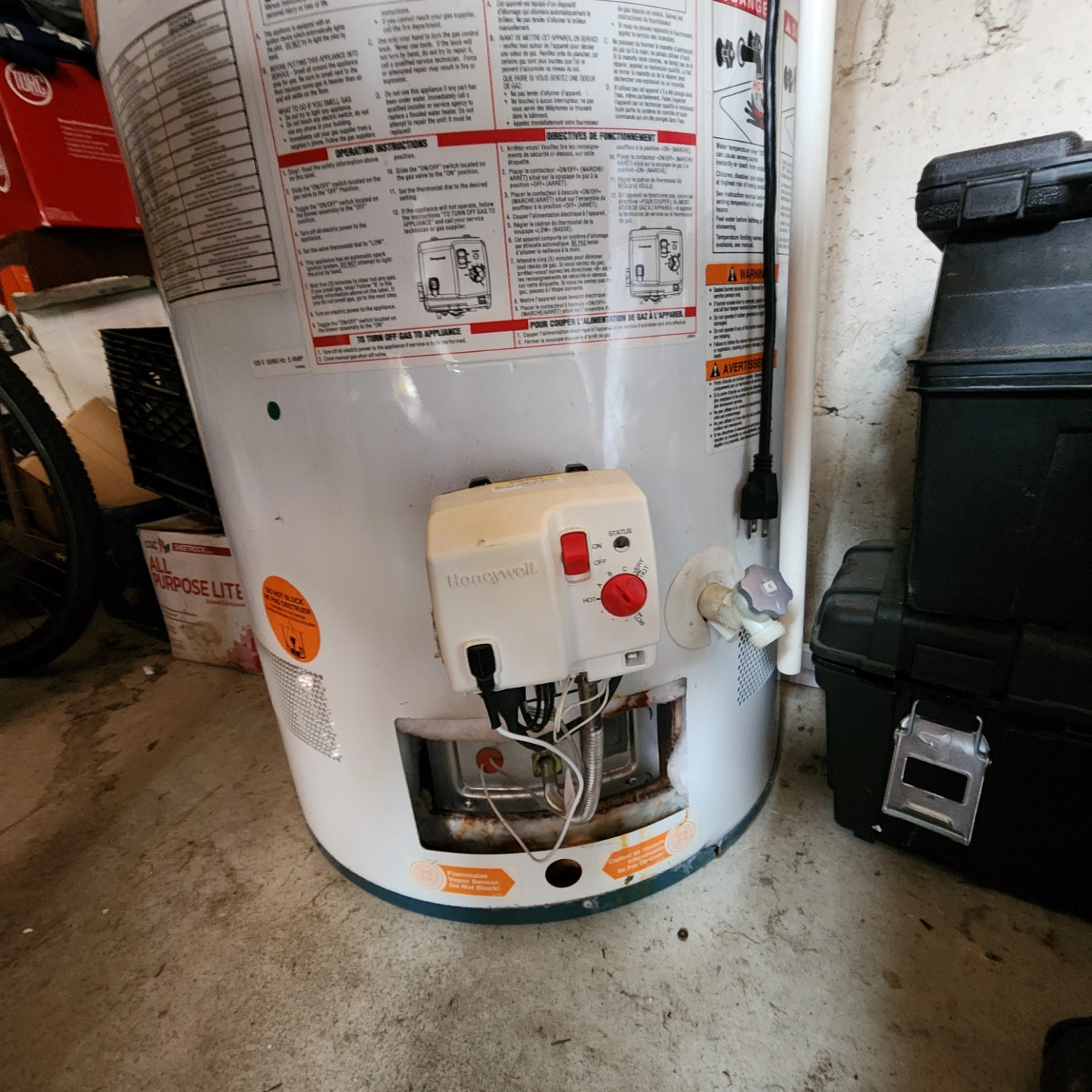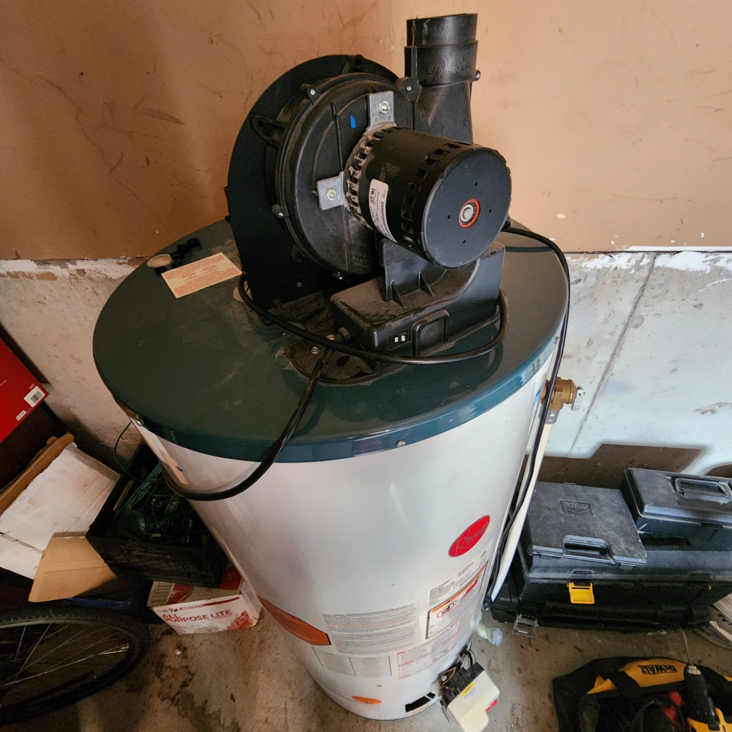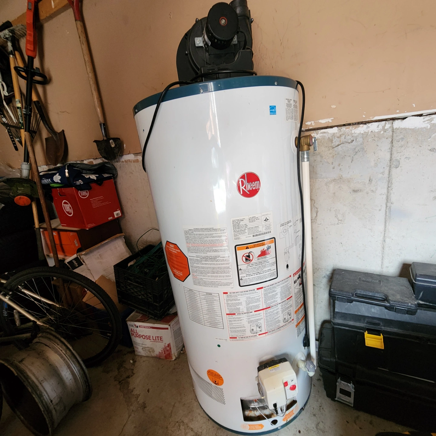 Used Rheem water heater. PowerVent model. Includes Honeywell control. Good working condition. 50 US gallons. Pick up only.