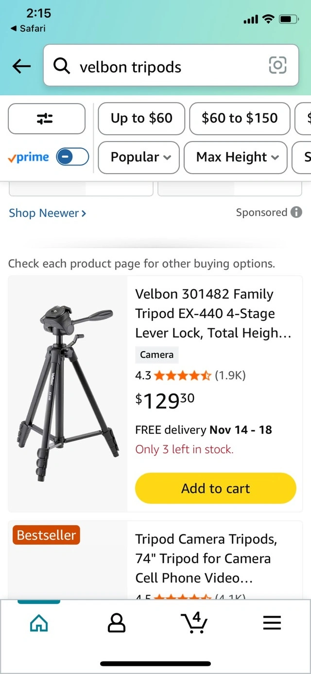 Buy & SellVelbon Camera TripodVelbon Camera Tripod$35Almost new, hardly used tripod extends to close to 4 feet high. Quality brand Velbon. Feel free to message if you have any questions!WHERE TO MEETCheck LocationView MapSELLERSueBallantrae100 reviews0 chats·0 favorites·8 viewsSEND CHAT TO SELLERHi Sue! I’m interested in your listing.Hi Sue! I’m interested in your listing.Get the Karrot app to chatSign In to chat