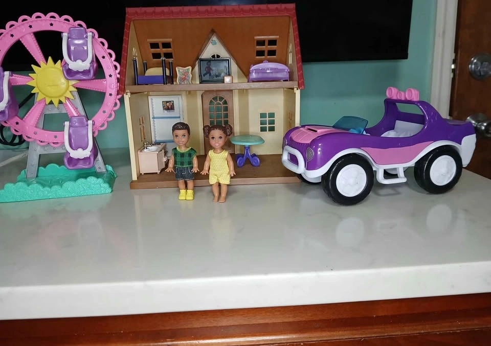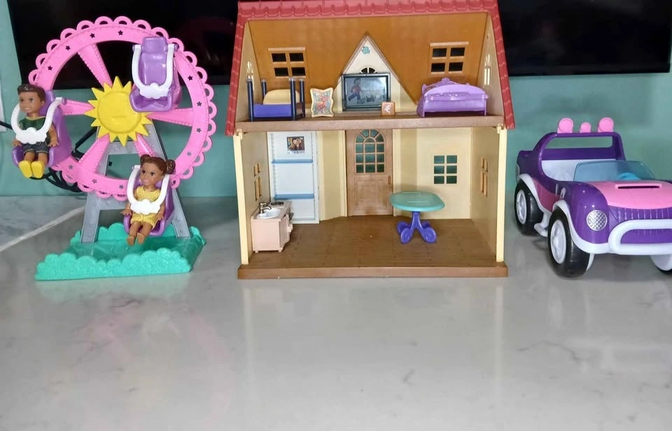 Dollhouse, Ferris Wheel, Car, 2 Dolls