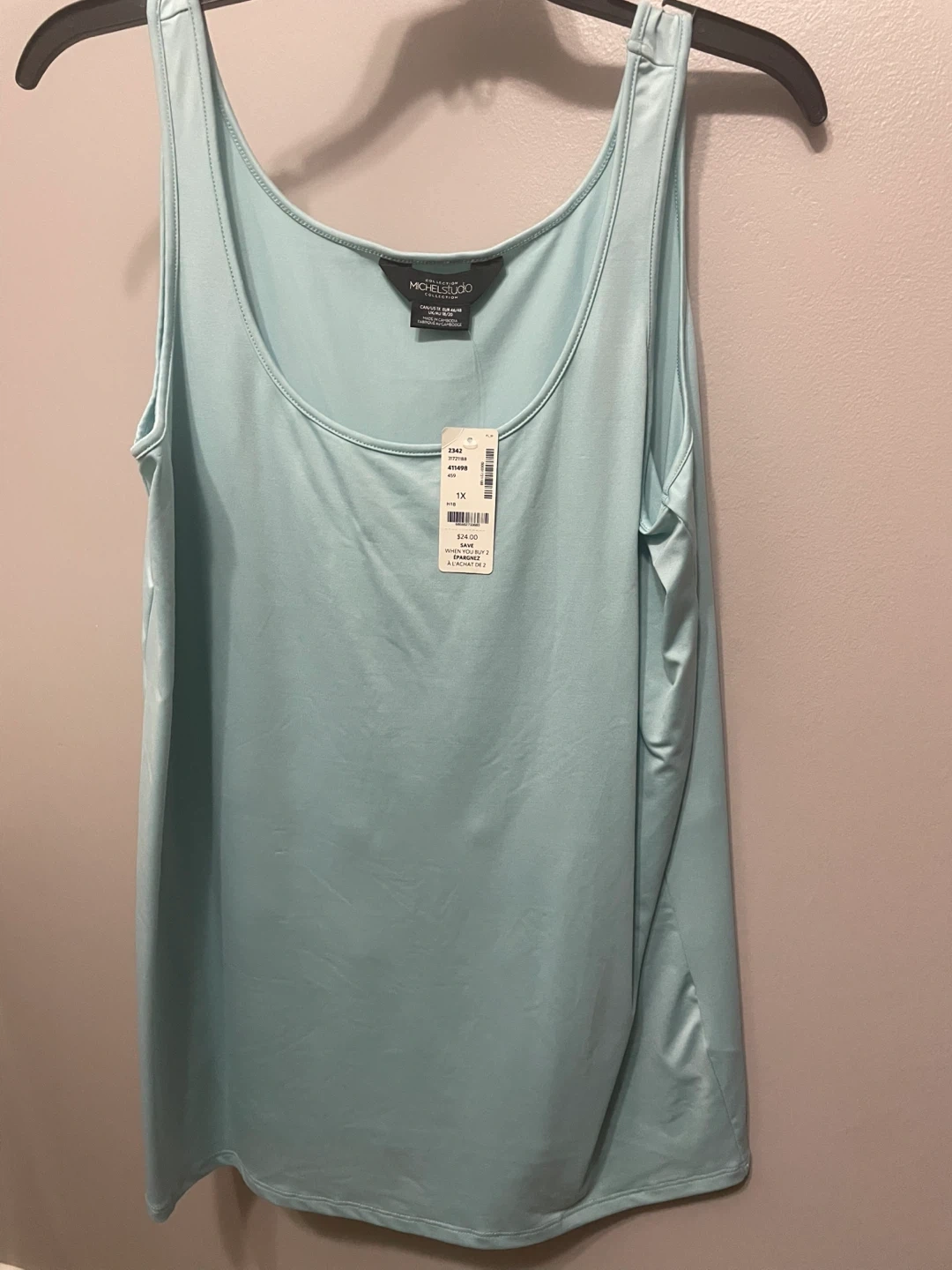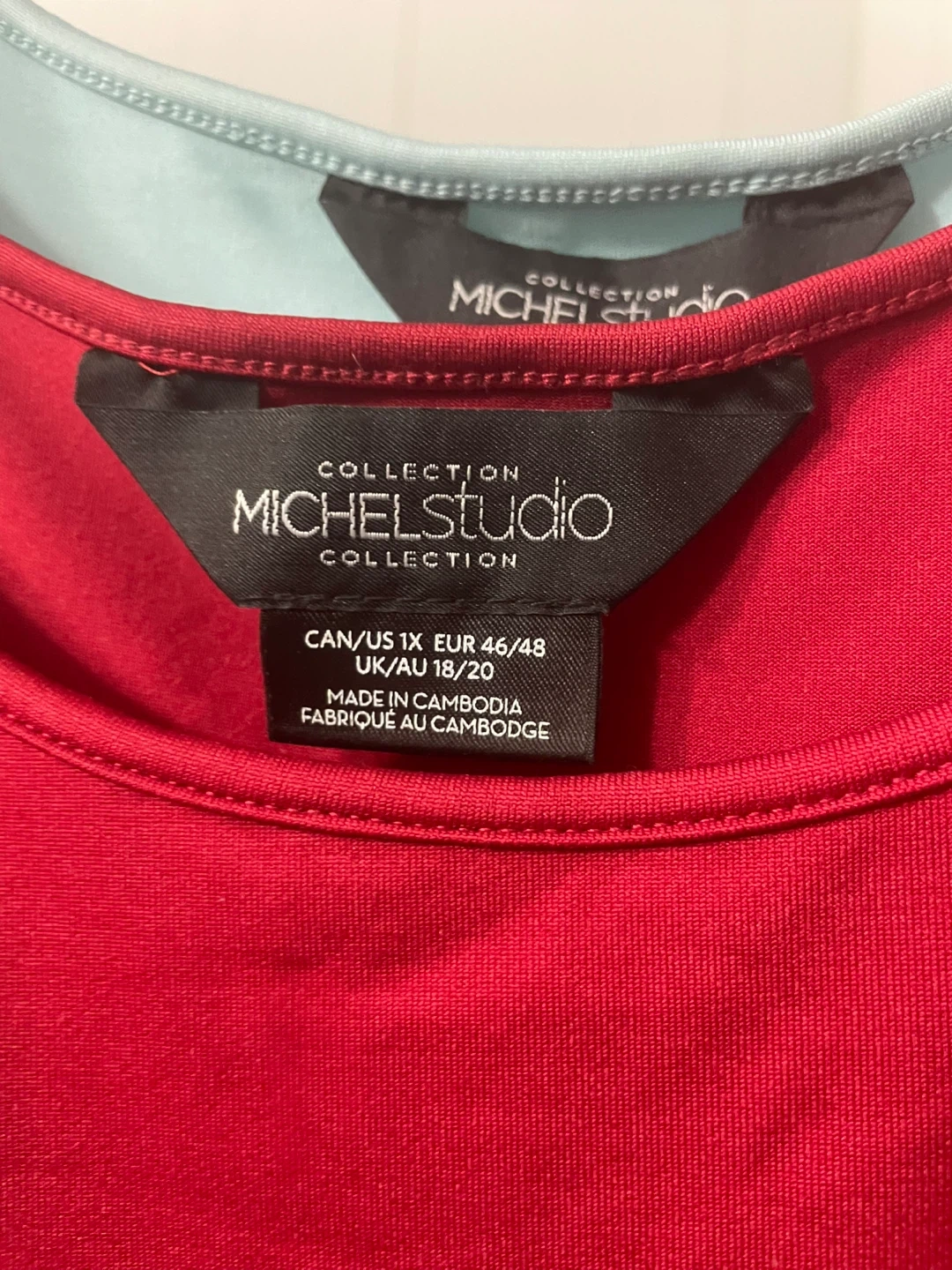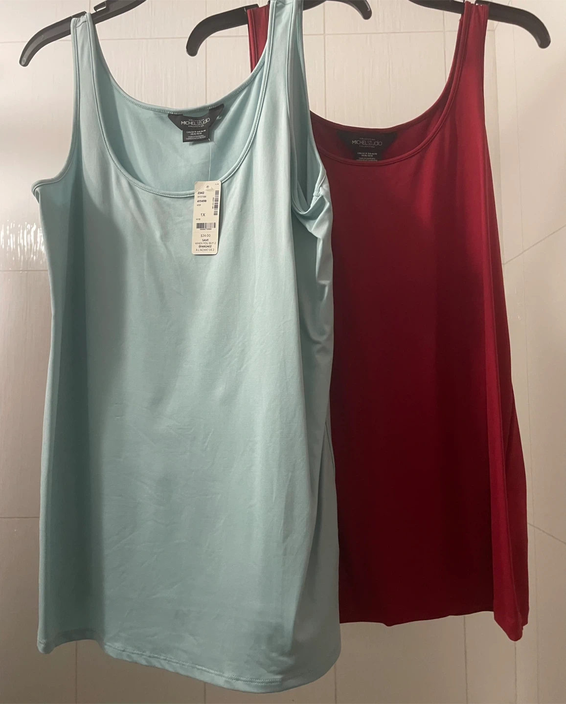 Selling 2 tank tops from Michel Studio Collection, one in red and one in light blue. Size 1X (CAN/US). Made in Cambodia. This pack includes two versatile tank tops.