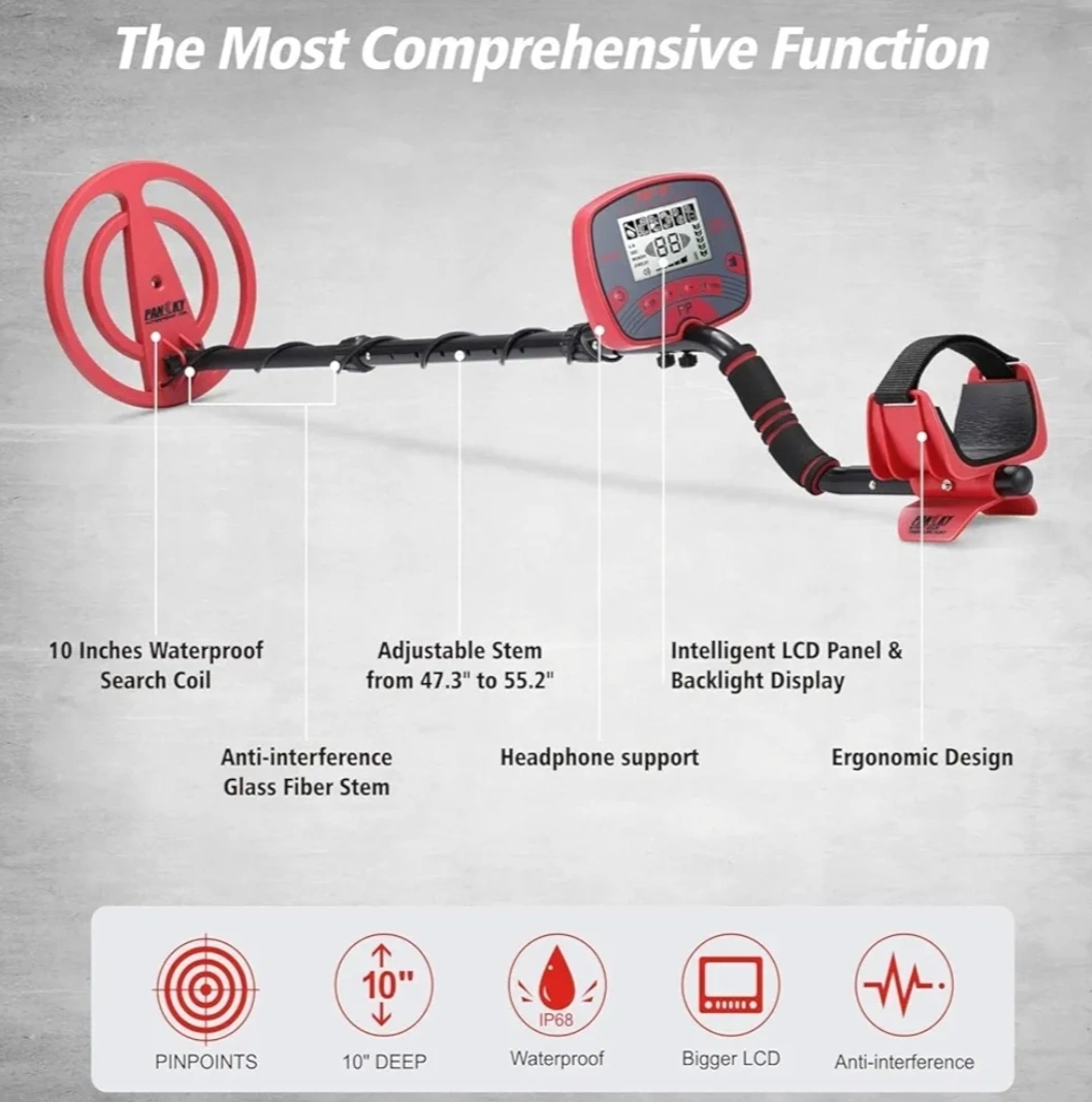 This brand new Pancky Metal Detector is perfect for treasure hunting, featuring an LCD display, adjustable sensitivity, and discrimination modes to find valuable metals while ignoring unwanted items. It's lightweight and easy to use, making it suitable for both beginners and experienced users. Ready to unearth hidden treasures?
