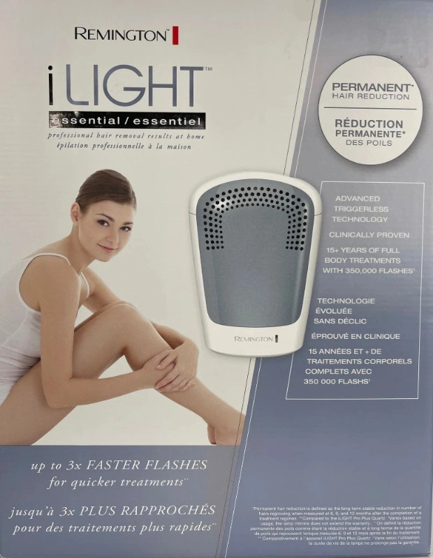 Still in box, never used. This Remington iLIGHT Essential uses home pulsed light (HPL) technology for long-lasting hair reduction. It works by heating hair follicles to disable growth. Features Advanced Triggerless Technology for faster flashes and quick treatments. The light cartridge never needs replacing and provides up to 15 years of full body treatments with 350,000 flashes. Suitable for face and body. Clinically proven, permanent hair reduction. Includes skin tone tester suitable for skin tones 1-5. Located in Summerside, SE London. Smoke-free home.