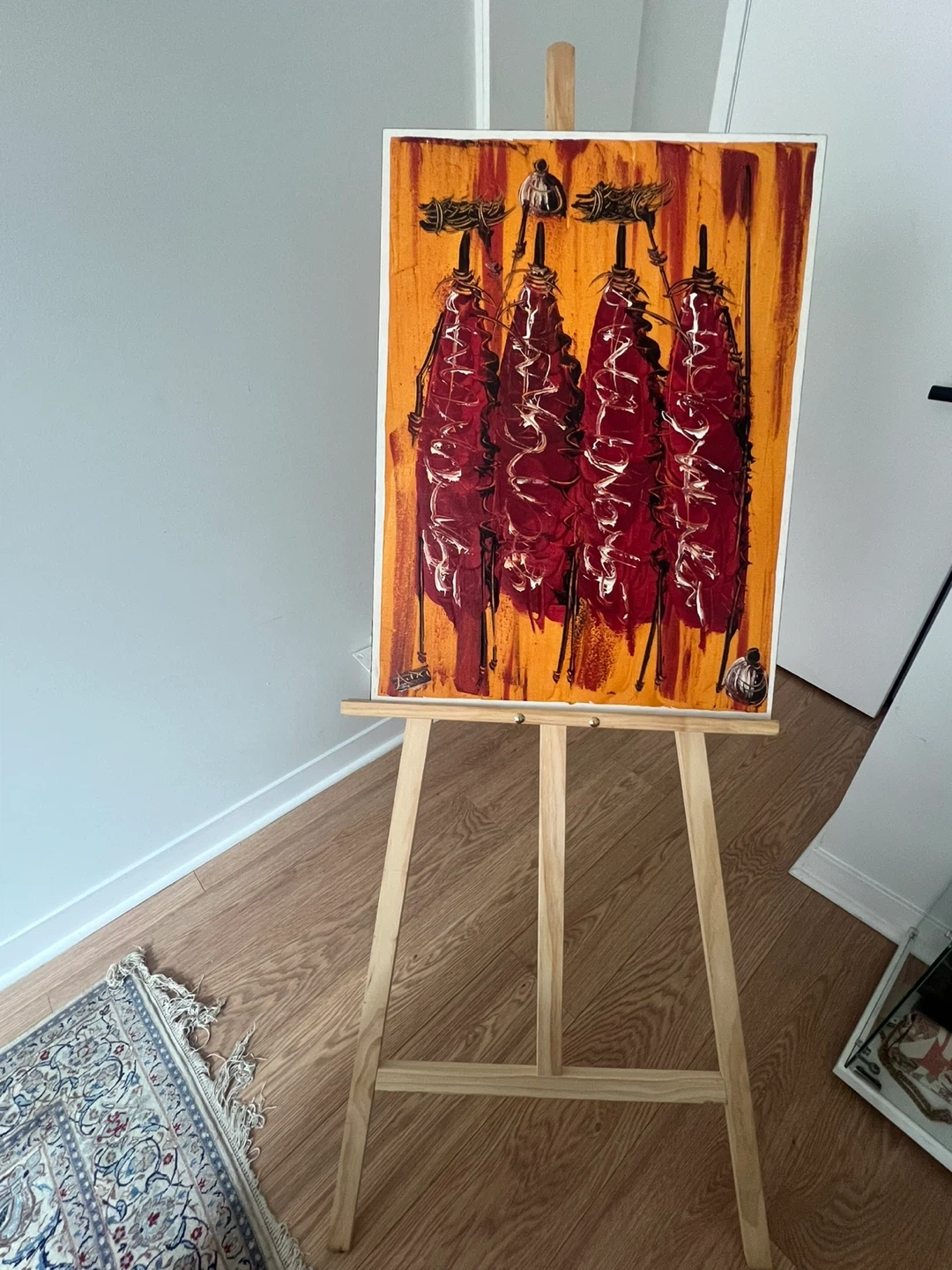Brand new sturdy wooden easel, perfect for displaying artwork or as a painting stand.