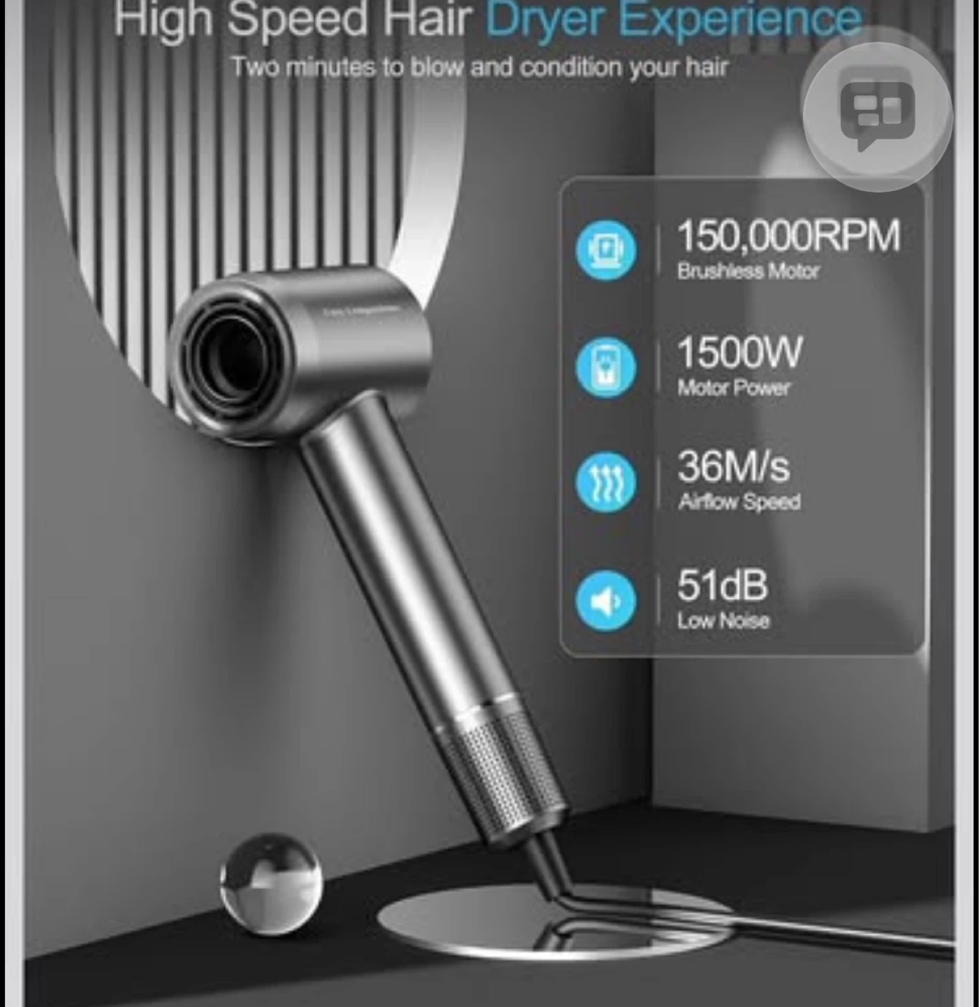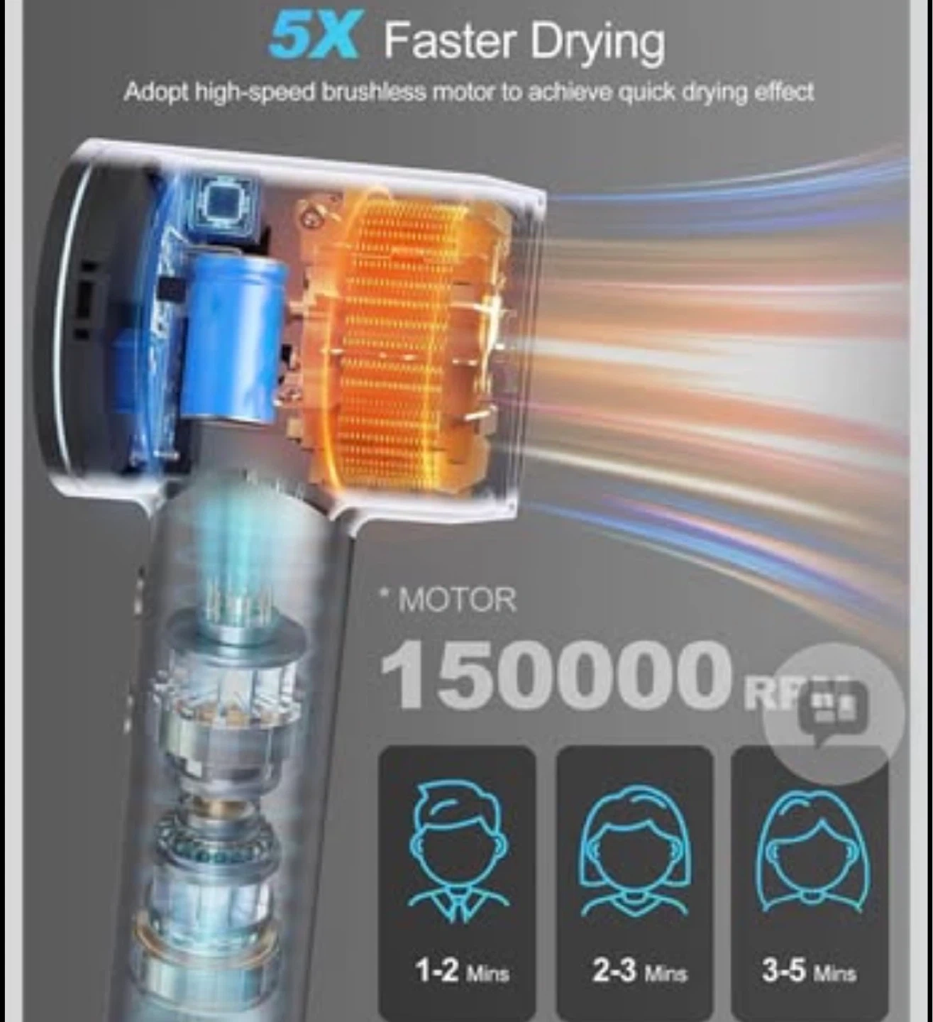 High-Speed Hair Dryer with 150000 RPM Motor