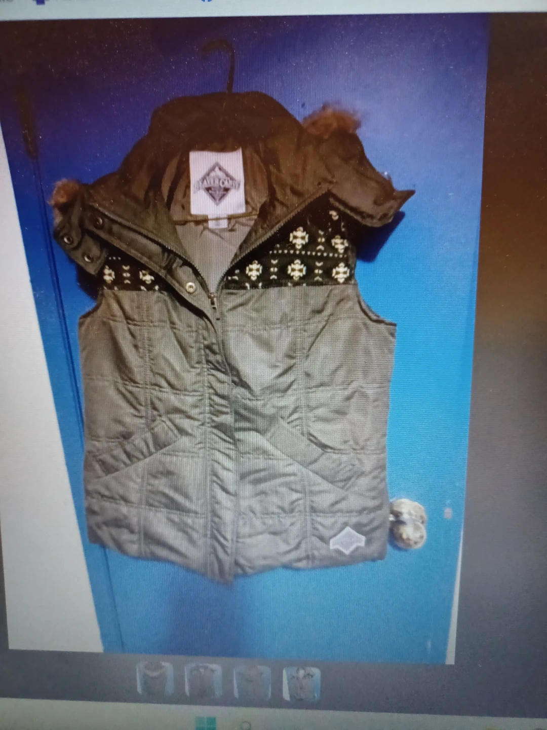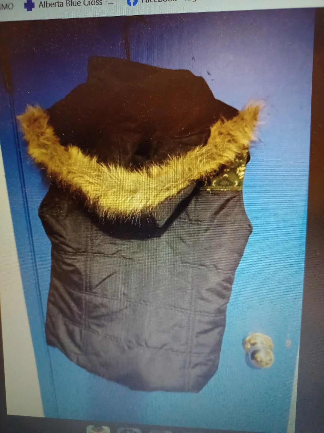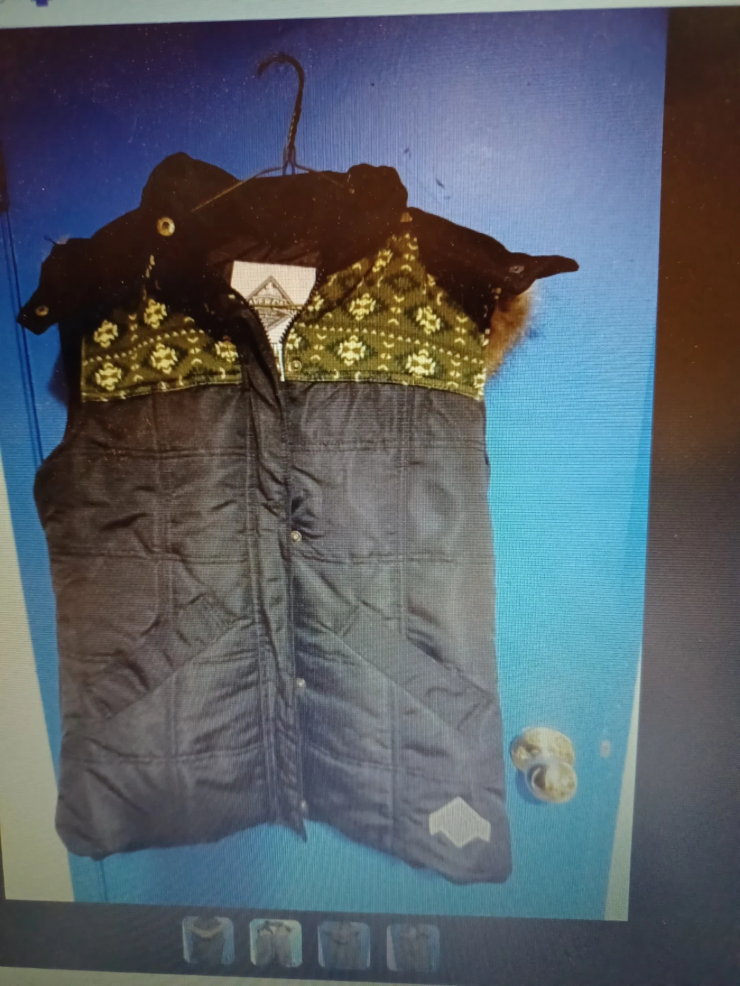 Cozy puffer vest featuring a faux fur trimmed hood and a patterned yoke. It's sleeveless with a full zip closure. Quilted exterior with a soft lining inside.