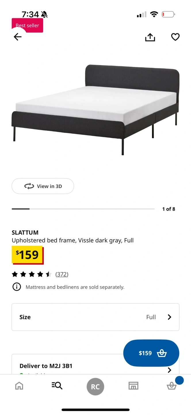 IKEA SLATTUM Upholstered Bed Frame - Dark Gray, Full