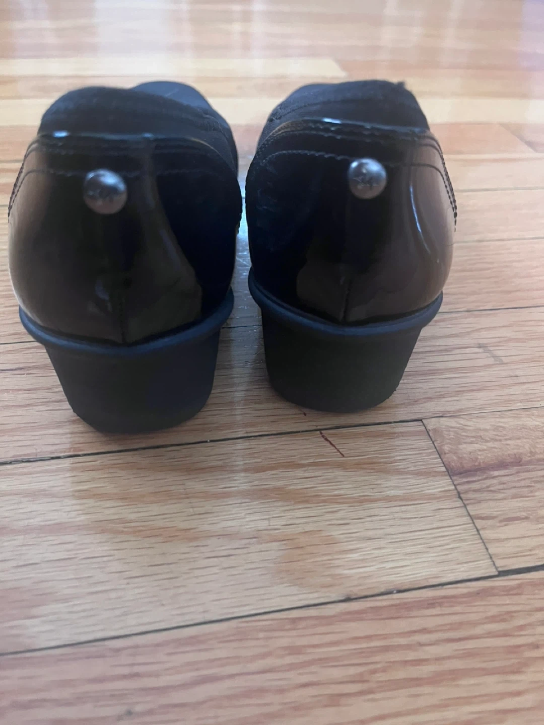 These are Anne Klein AK Sport flats in black. They have a cute, simple design that's perfect for everyday wear. They appear to be in good condition!