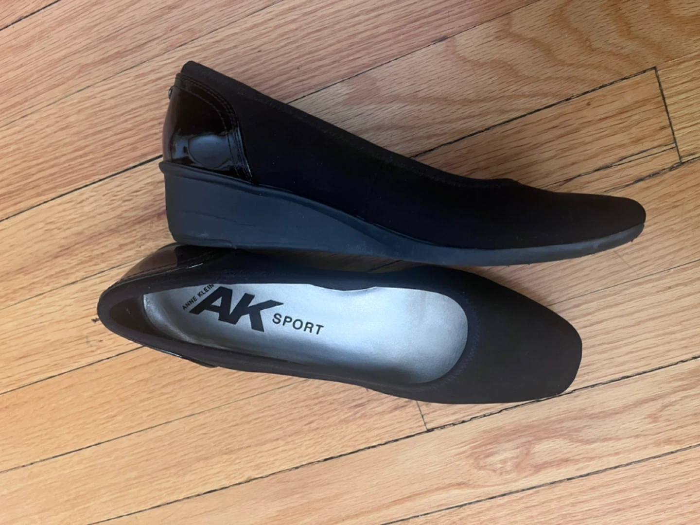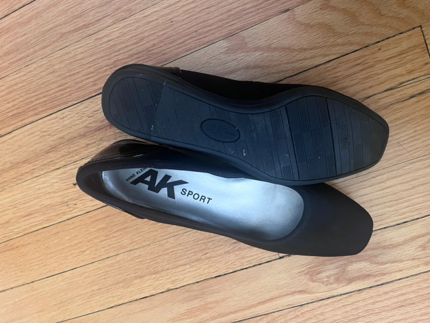 These are Anne Klein AK Sport flats in black. They have a cute, simple design that's perfect for everyday wear. They appear to be in good condition!