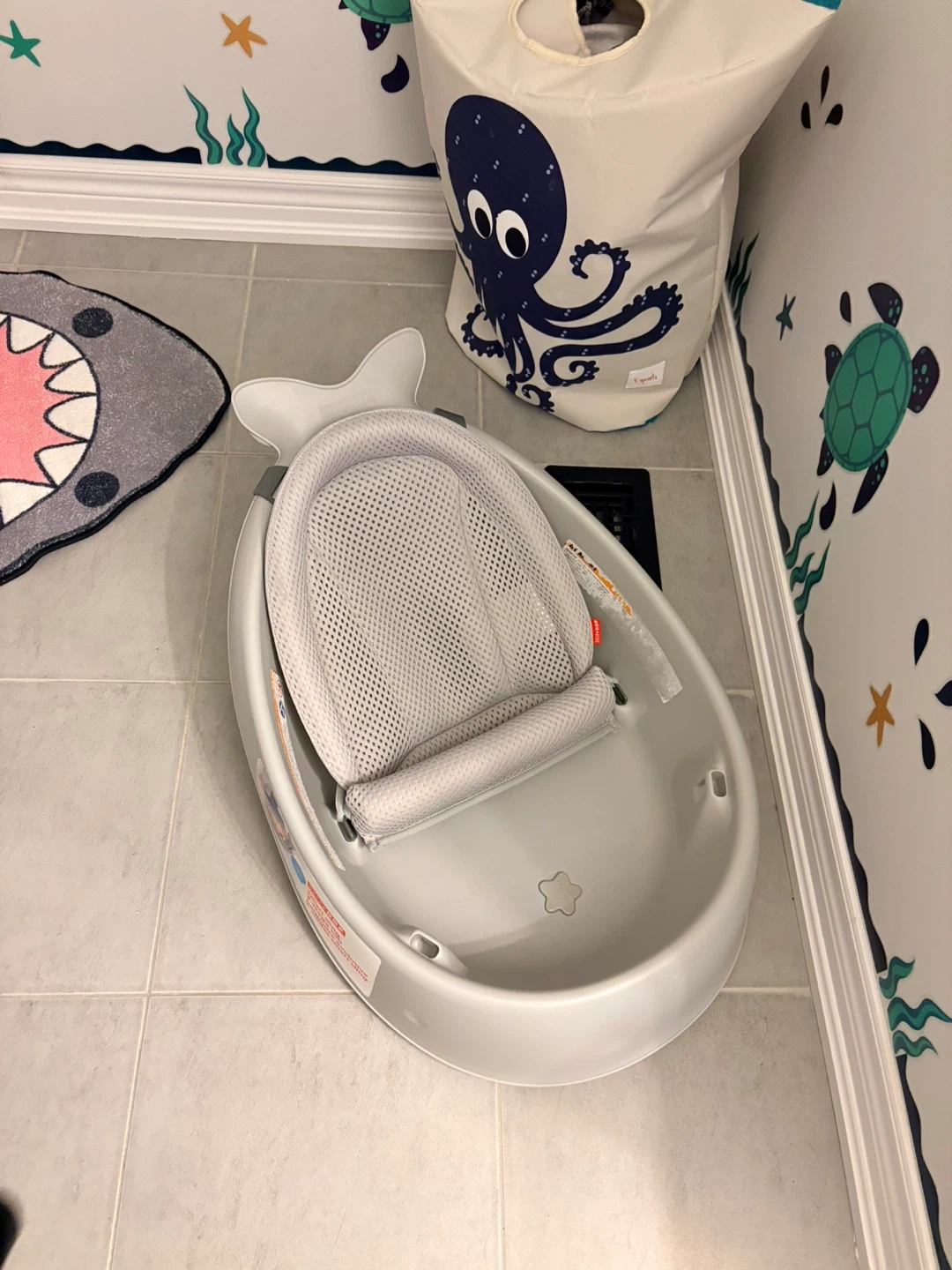 This is the Skip*Hop Moby smart sling 3-stage tub. It's designed for babies from newborn to toddler. The smart sling adjusts to three stages to support your baby as they grow.