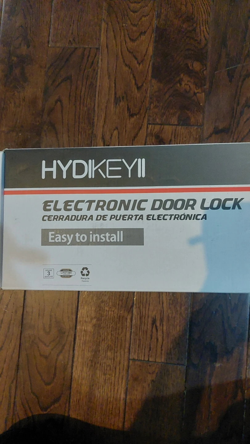 Selling a brand new HYDIKEYII electronic door lock! It comes in its original box with all the components you see in the pictures, including the installation guide and keys. This smart front door lock has two ways to access: password or keys. Easy to install and ready to go!