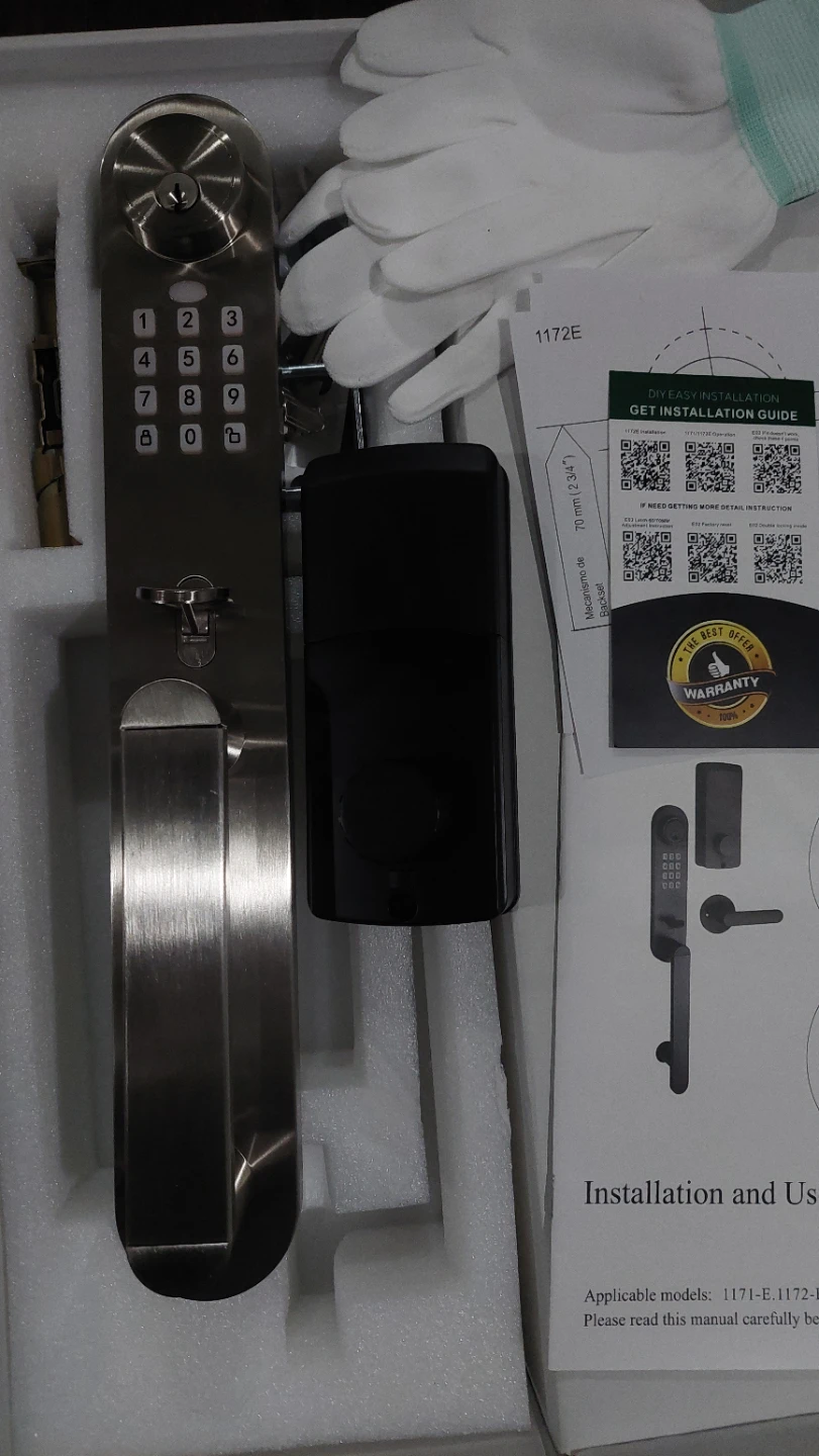 Selling a brand new HYDIKEYII electronic door lock! It comes in its original box with all the components you see in the pictures, including the installation guide and keys. This smart front door lock has two ways to access: password or keys. Easy to install and ready to go!