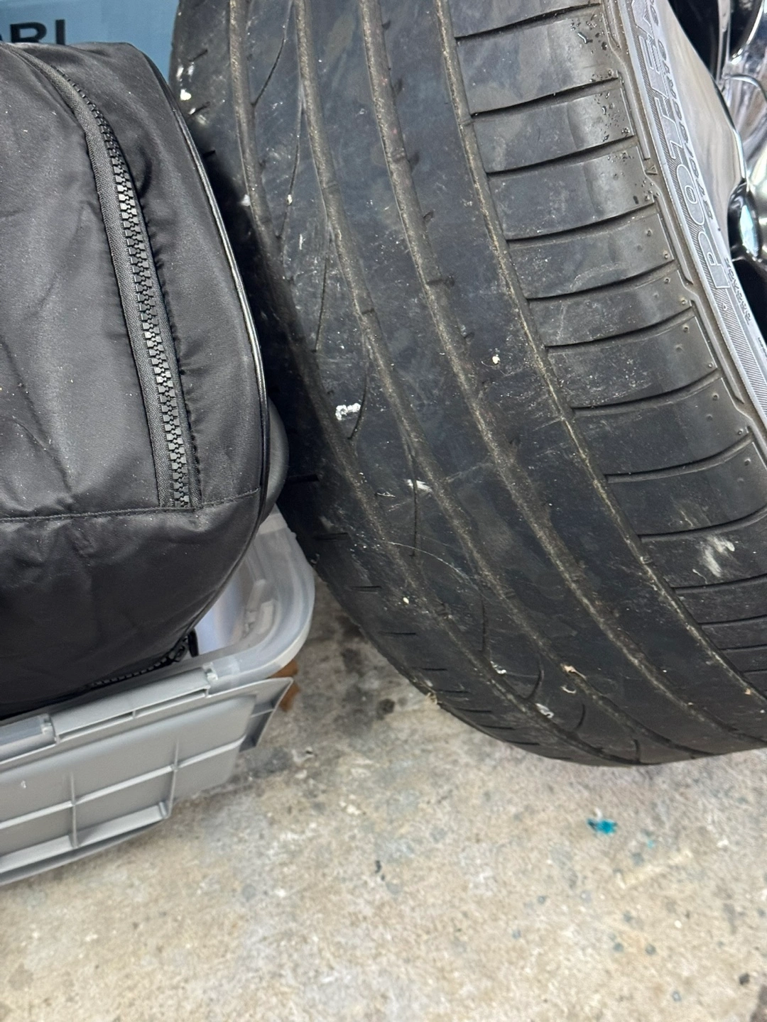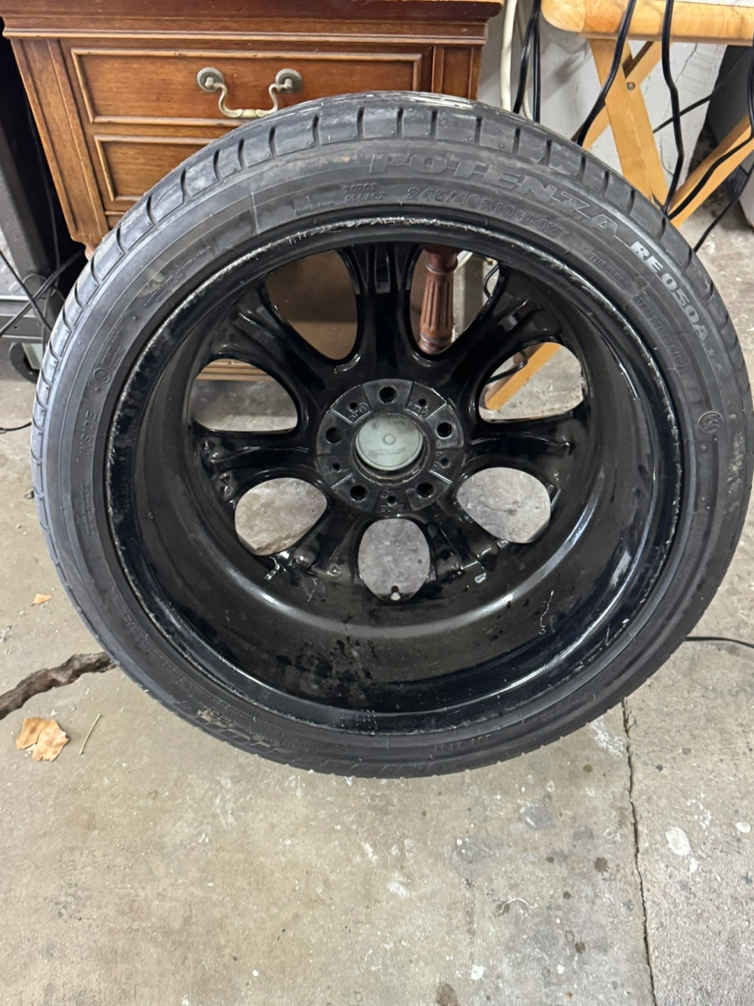 This is a set of 4 BMW alloy wheel with a tire mounted. It's black and has a multi-spoke design. The tire appears to be a Bridgestone Potenza RE050A.