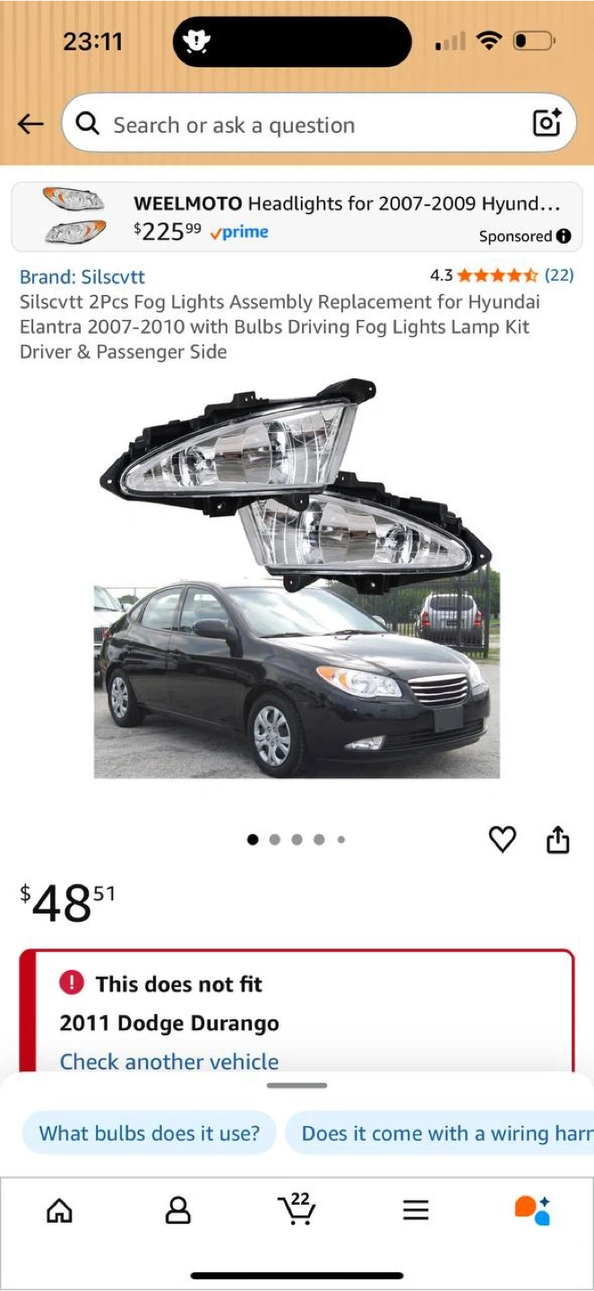 π Hyundai Elantra Fog Lights 2007β2010 β New Set π‘