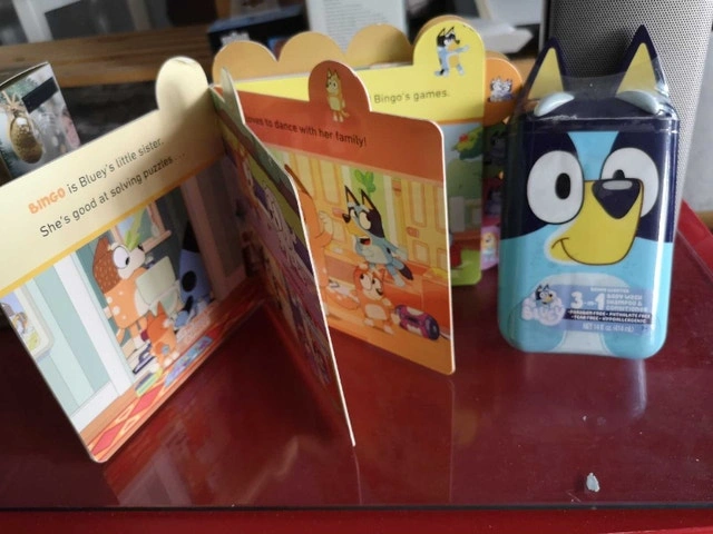 This is a Bluey book and shampoo set, perfect for Bluey fans! The set is in good condition and ready for a new home. I'm pretty sure that if this ad is still up, it's available!