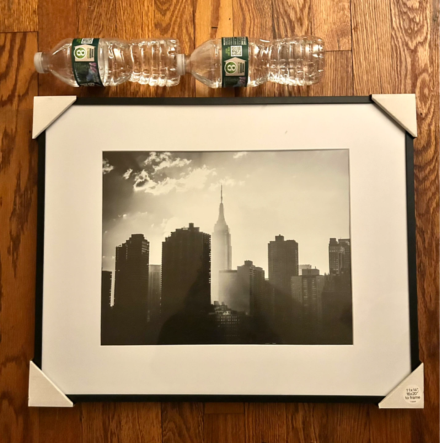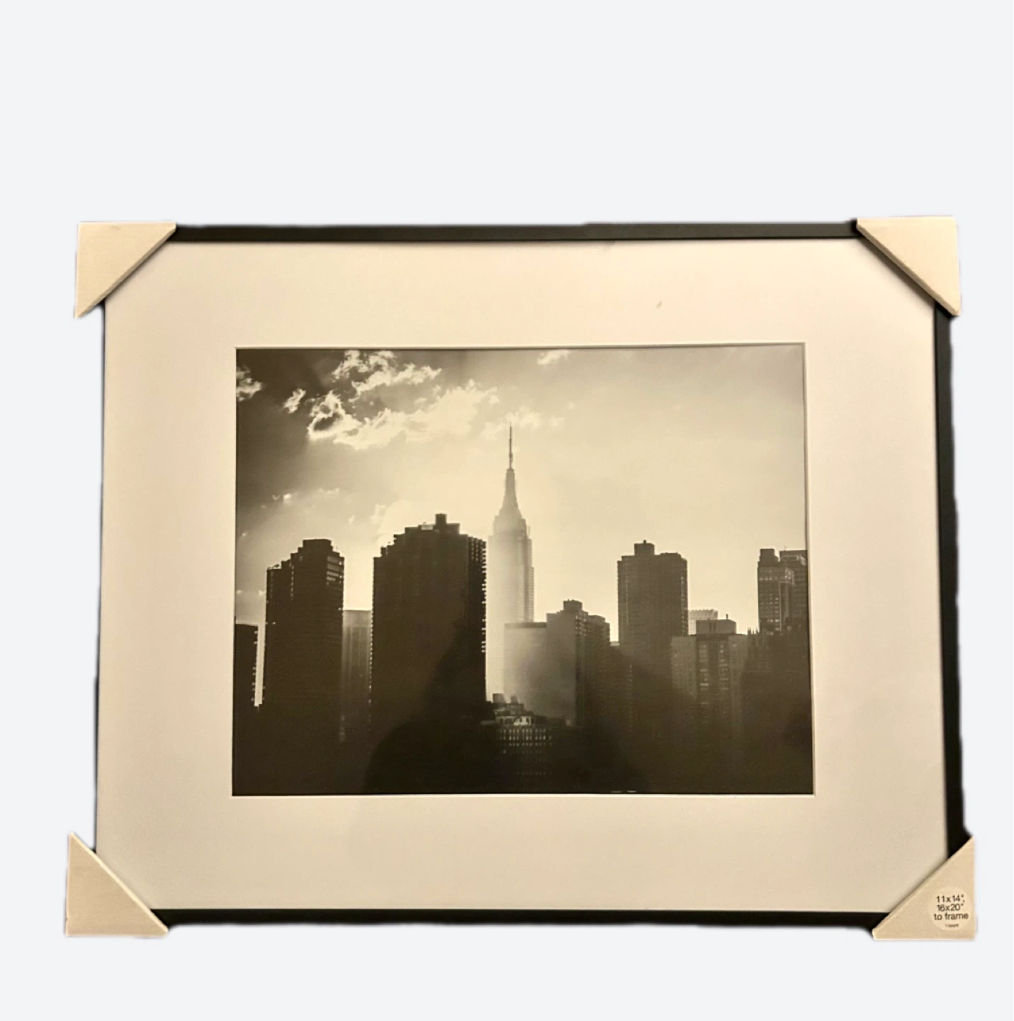 This black frame is for an 11x14 inch photo, drawing or painting. The frame is 16x20 inches. It's standard size for displaying pictures of any kind. This frame's a great way to showcase your favorite photos and much more!