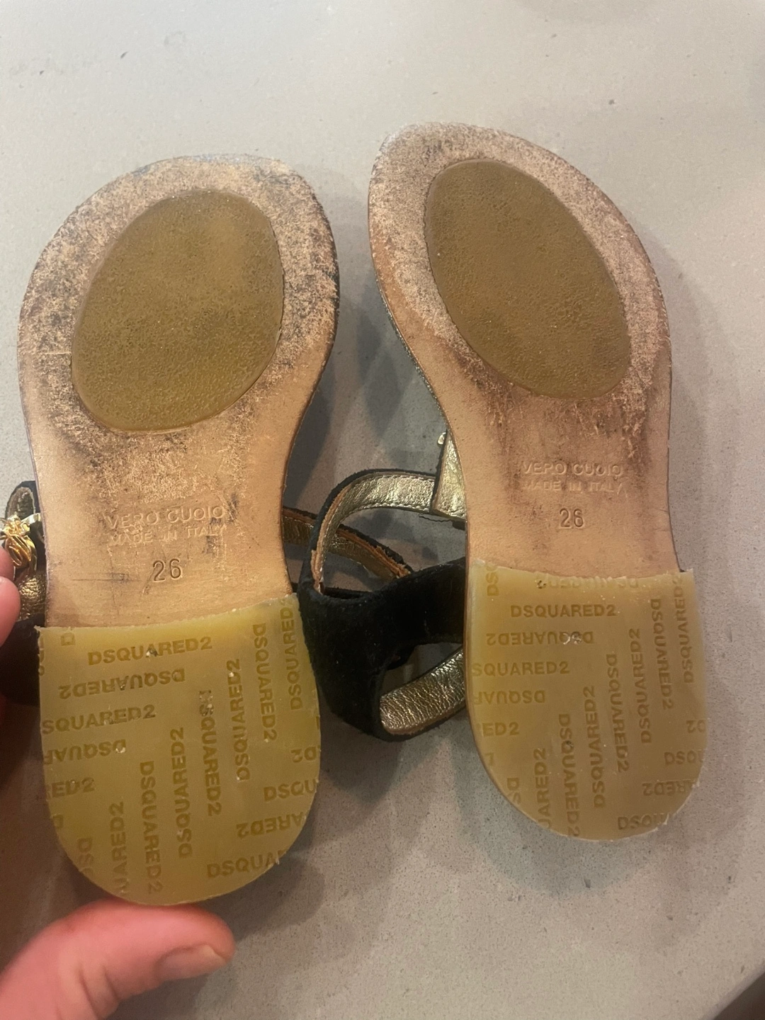 DSQUARED2 Girls' Black and Gold Sandals Size 26