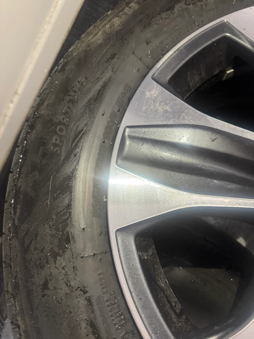 Selling a set of four alloy wheels with Bridgestone tires. Tire size is 235/55R18. These are great for replacing worn tires or for a spare set.