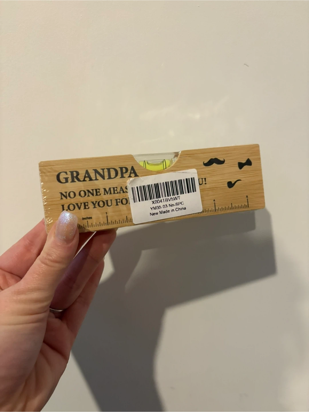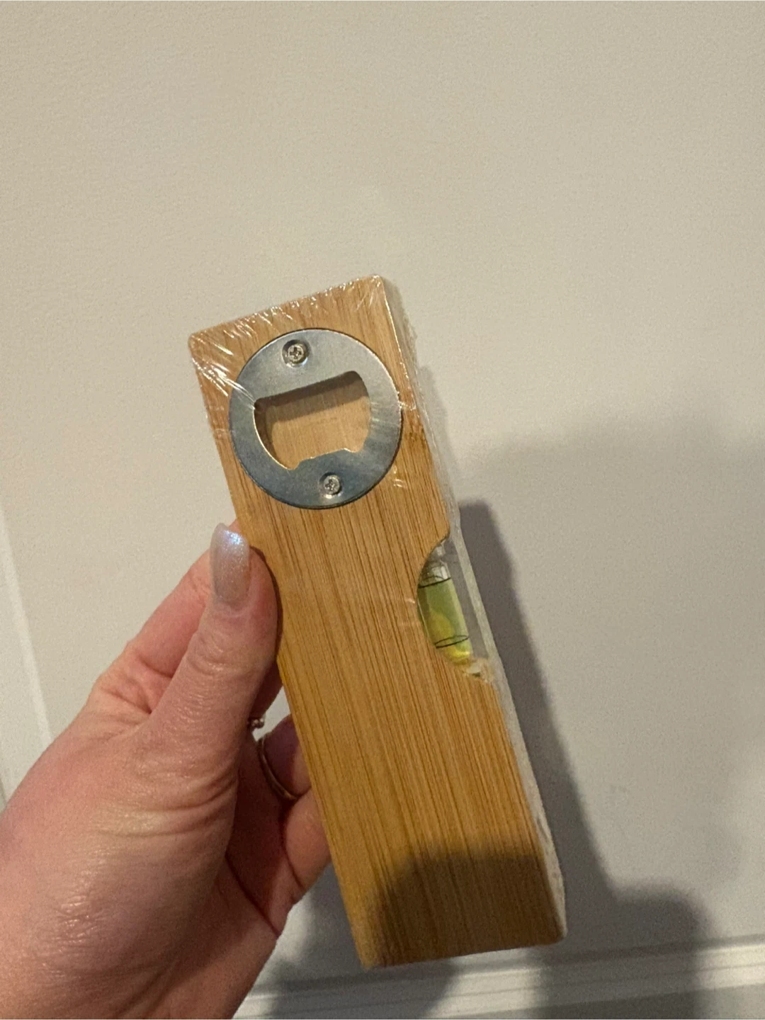 This novelty tool is a combination level and bottle opener. The tool also has ruler markings in inches.