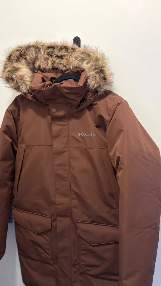 Columbia Men's Cape Ridge Parka in Tobacco color. Features waterproof material, Omni-Heat Infinity for maximum warmth, and a removable faux fur trim. This is a new product, only worn once as it was too warm for my needs. Pickup available in downtown Montreal.