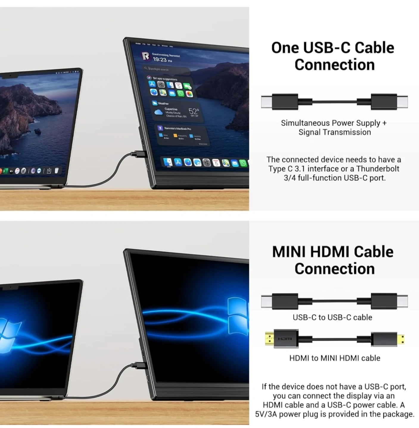 This is a Dopesplay 15.6-inch portable monitor with a Full HD display. It's compatible with laptops, PCs, and gaming consoles via USB-C or Mini HDMI. VESA mountable for flexible installation.