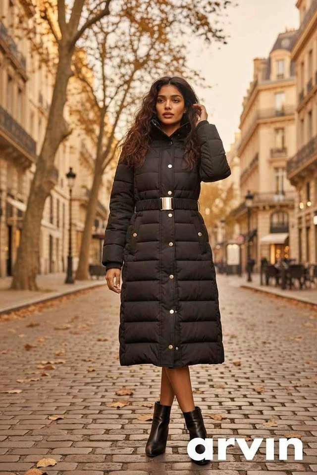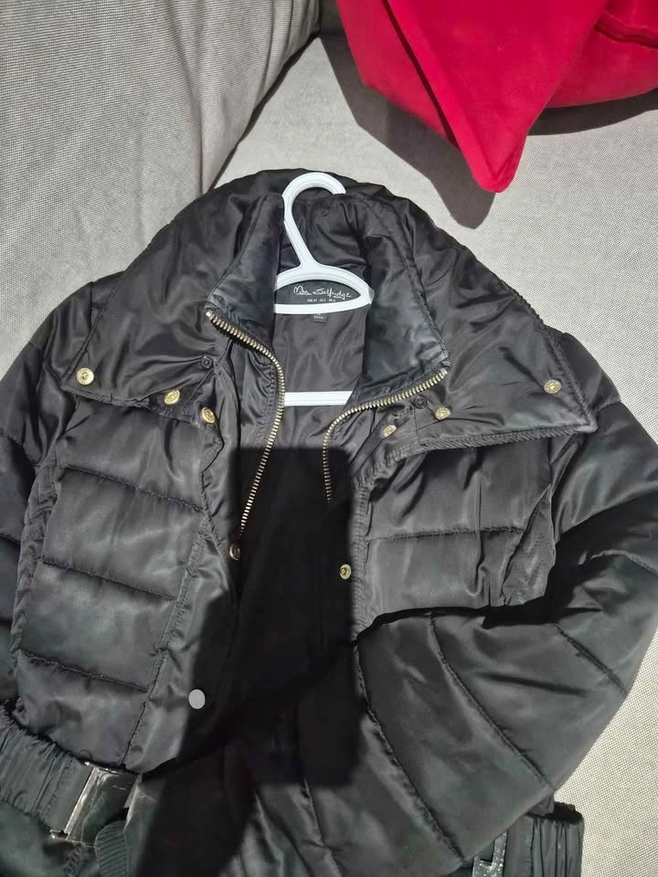 Stylish Miss Selfridge long black puffer coat. Has a belted waist with a gold buckle and gold snap buttons down the front. Super warm for winter! Was bought in Germany.