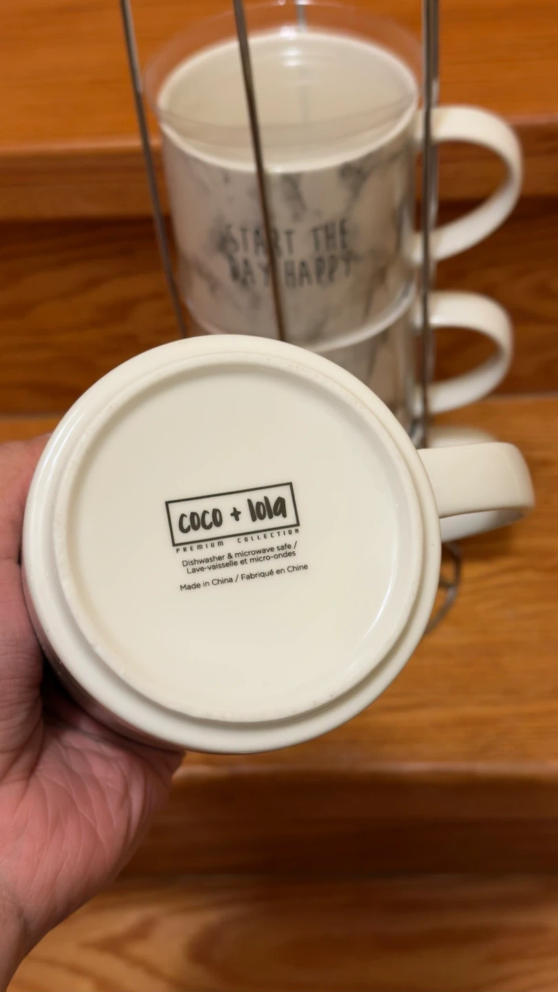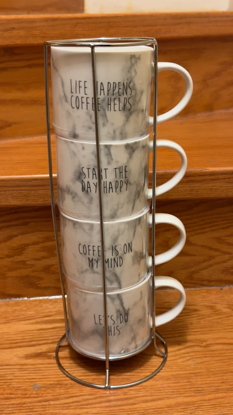 Set of four ceramic mugs from Coco + Lola. Each mug has a unique quote and a marble-like design. They're dishwasher and microwave safe. Perfect for your morning coffee or tea!