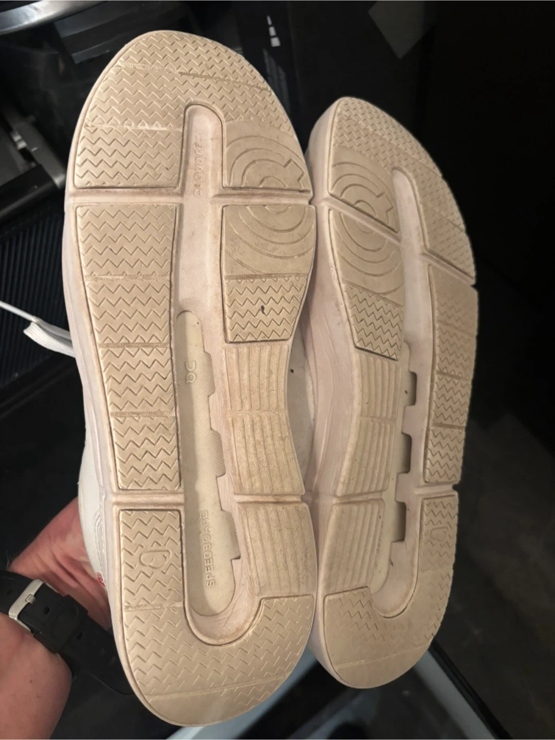 On Cloud leather running shoes.