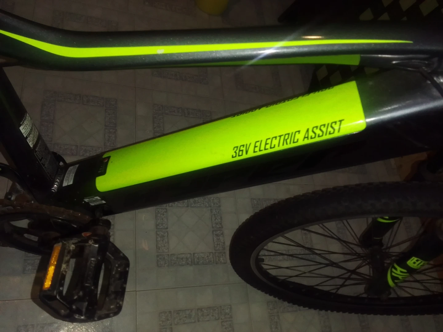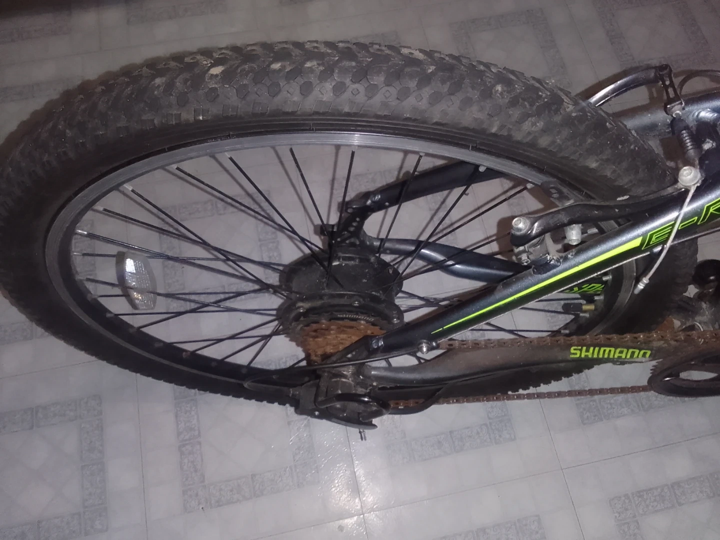 FREE Black mountain bike with bright green electric assist decals. Features Shimano components. Comes with power cord but I cannot get it to power up. Tires are flat. Brakes need fixing. Spokes need reattached. Chain is a little rusty. Good for parts.