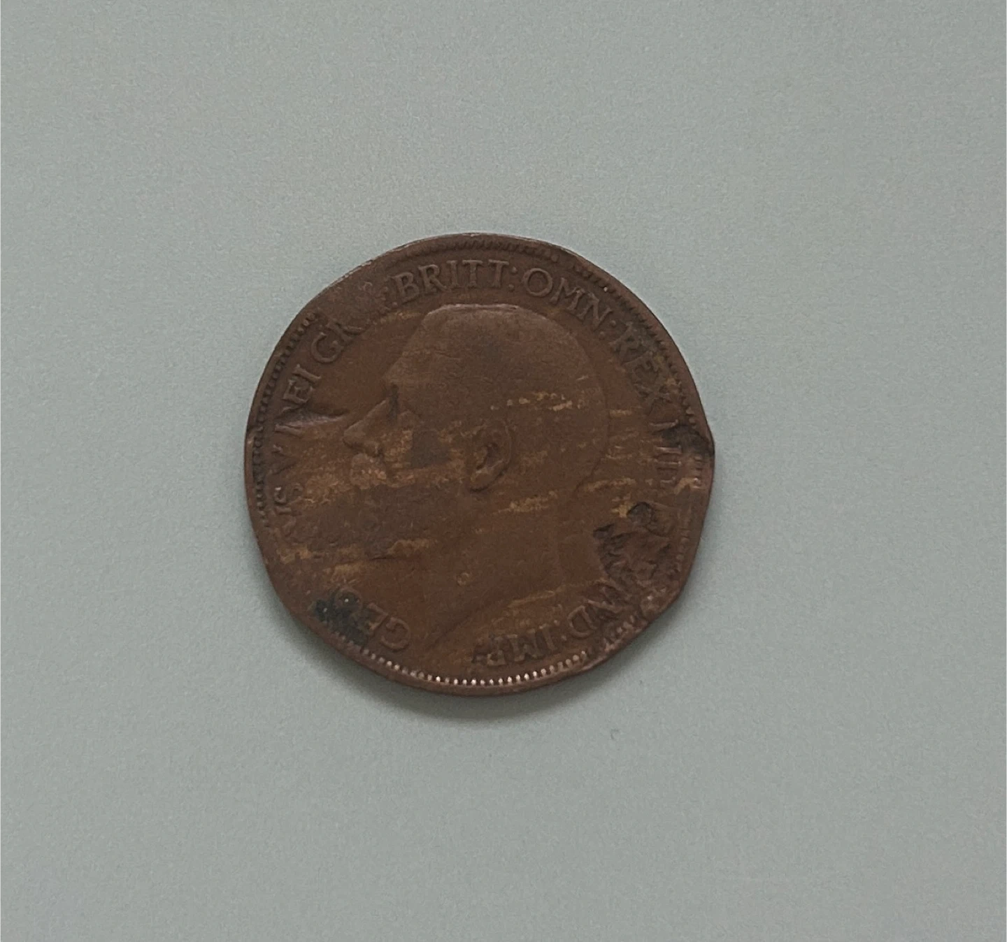This is a vintage British half penny coin. It features King George V on one side and Britannia seated on the other. Dates back to 1913. It's a copper coin, showing signs of age and circulation.
