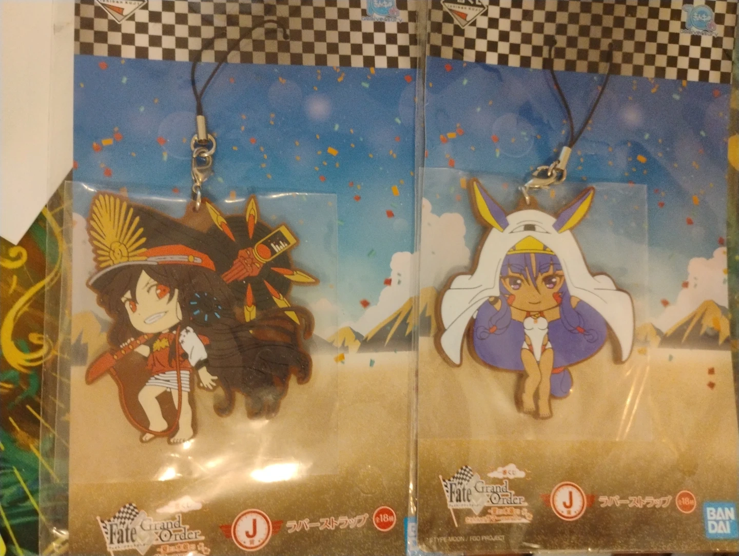 Two Fate/Grand Order rubber straps featuring characters from the series. These collectible straps come with lanyards for easy attachment. Perfect for fans of the Fate/Grand Order franchise!