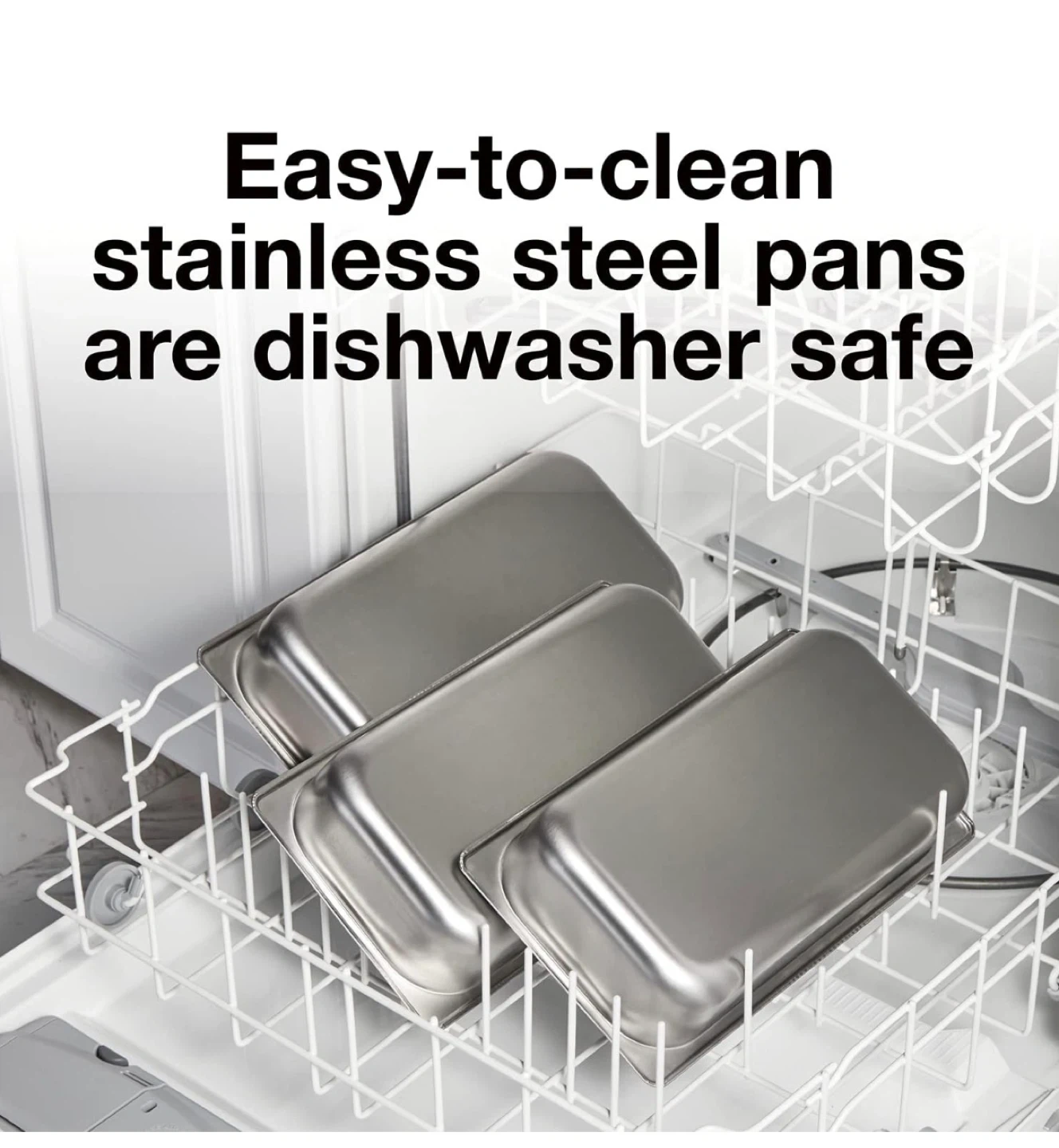 Keep your favourite dishes warm for parties or events! This buffet server includes three 2.5-quart stainless steel pans with transparent lids. It easily converts to a warming tray for more serving options. Provides consistent, adjustable heat to keep food warm for hours.